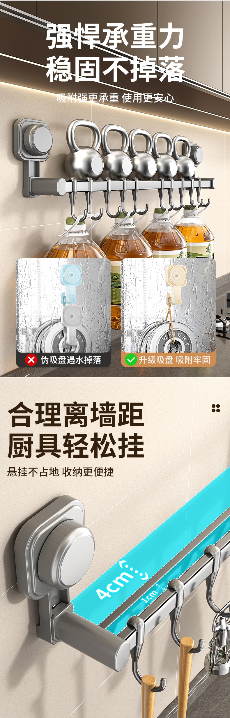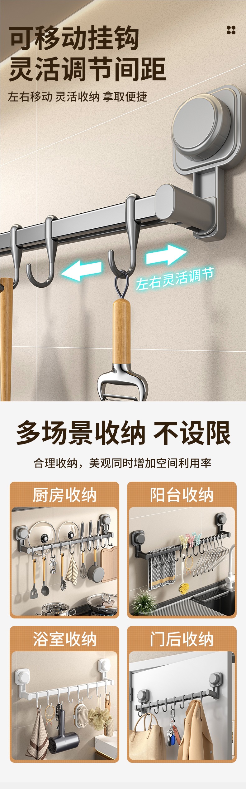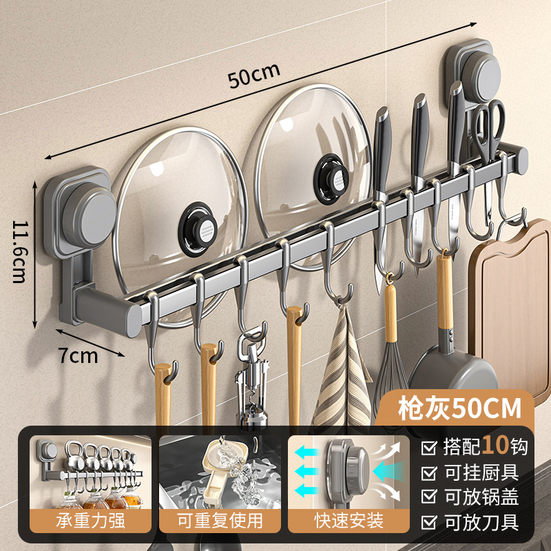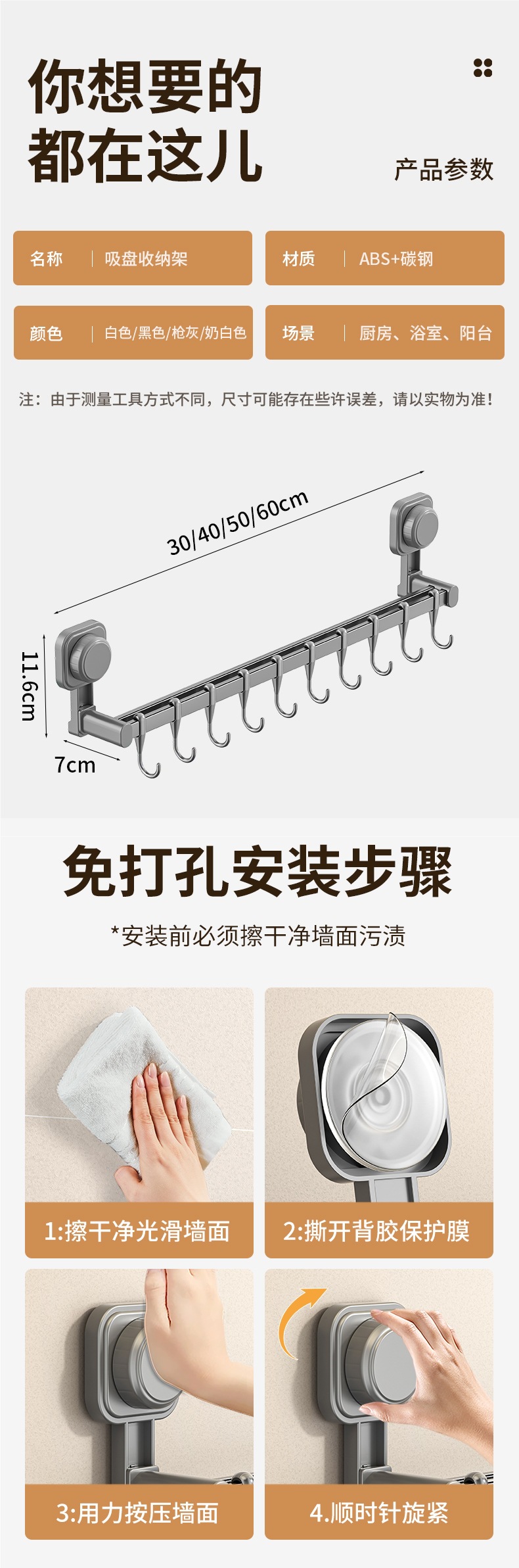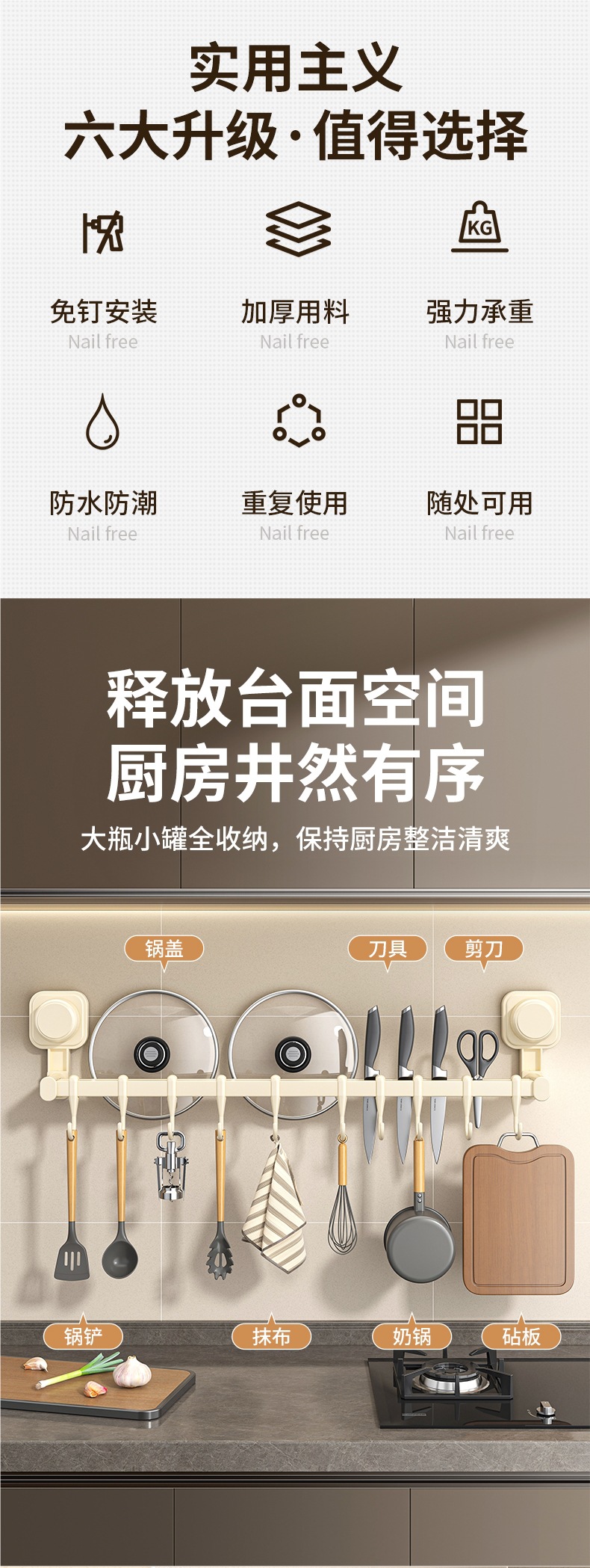 흡착식 주방후크, 펀치프리 걸이봉, 냄비뚜껑 수납선반, 행후크, 주걱, 스푼, 칼 수납선반, 다기능