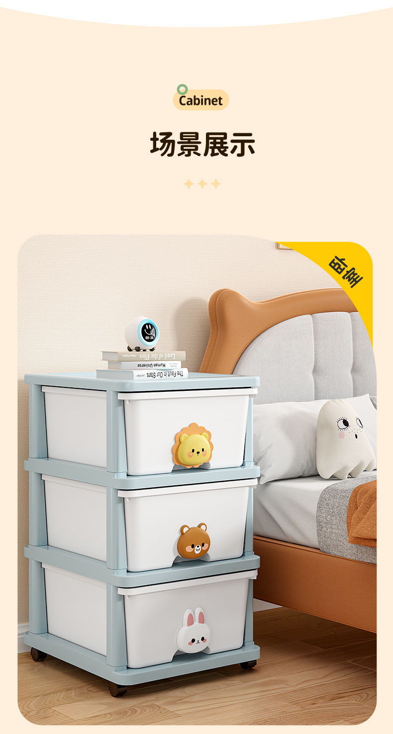 장난감 보관 캐비닛 서랍 형 플라스틱 스낵 캐비닛 어린이 옷장 두꺼운 아기 보관 상자 만화 침대 옆 테이블 두꺼운스토어 가기