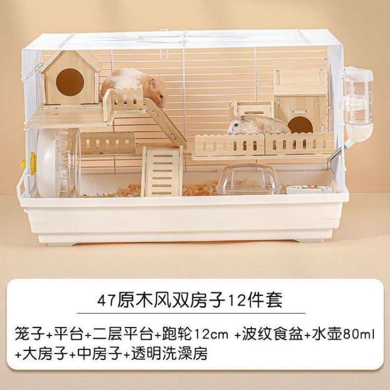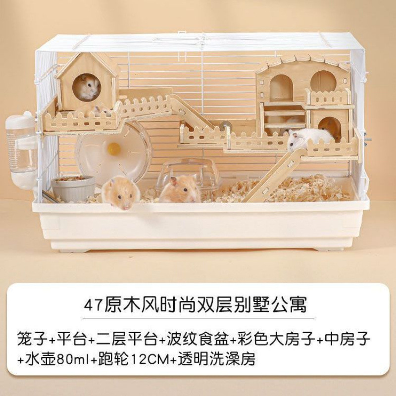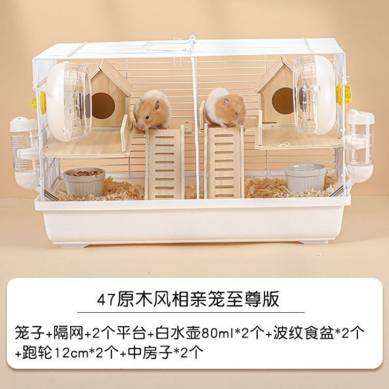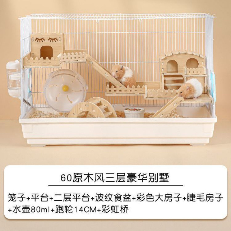 황금곰 햄스터 케이지 특수 단단한 나무 넓은 공간 초보자 전체 세트 초대형 빌라 럭셔리 더블 레이어 초대형