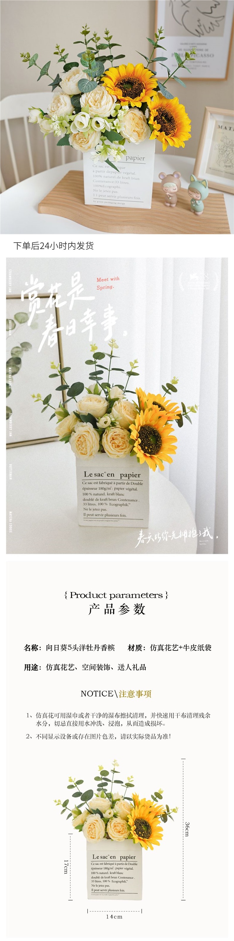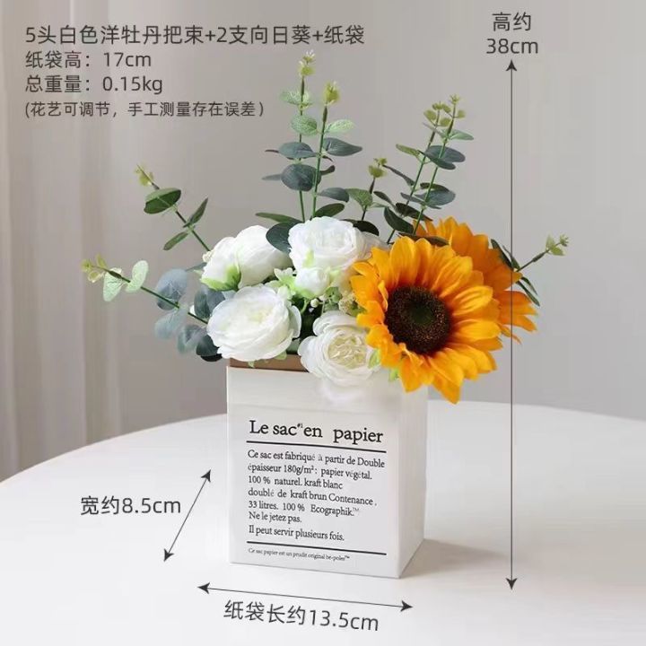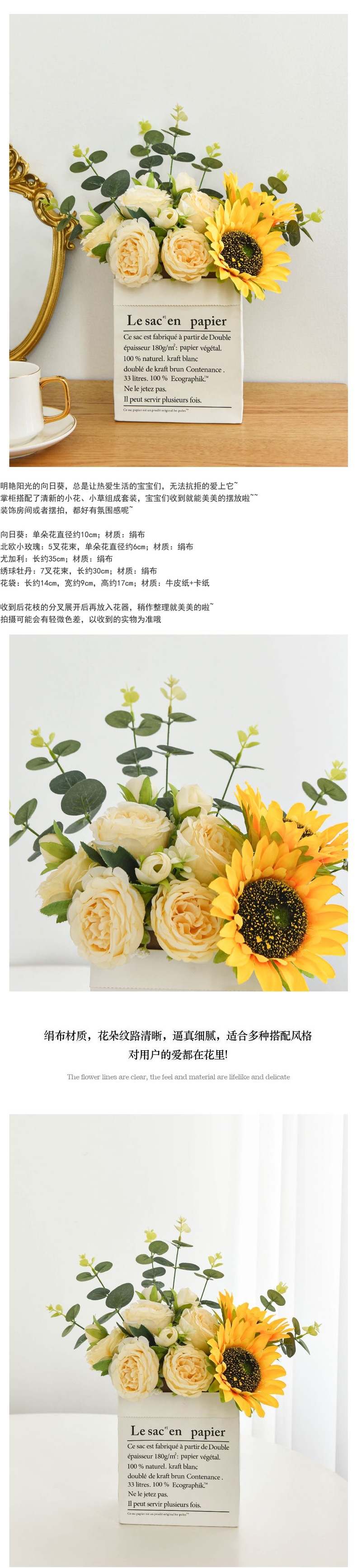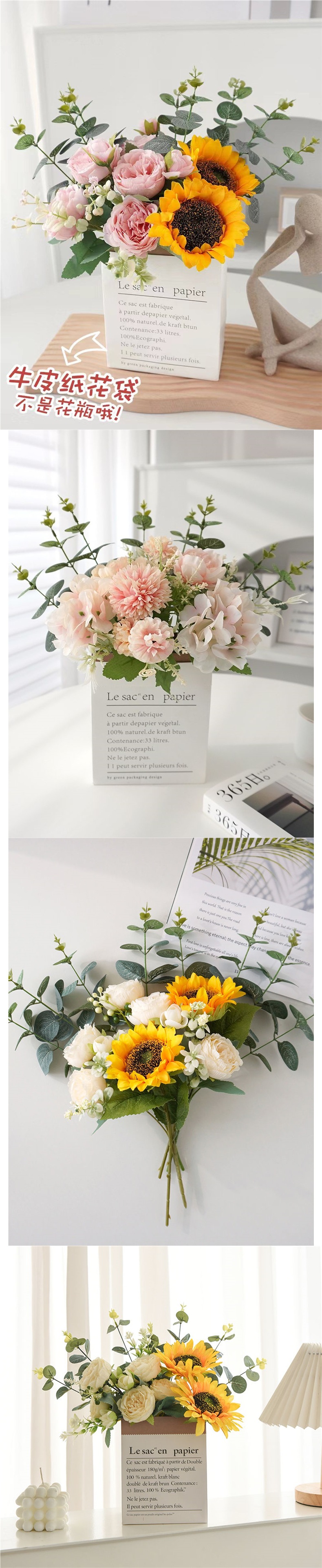 Ins 해바라기 가짜 꽃 시뮬레이션 꽃다발 홈 인테리어 거실 룸 데스크탑 종이 봉투 장식 사진 소품