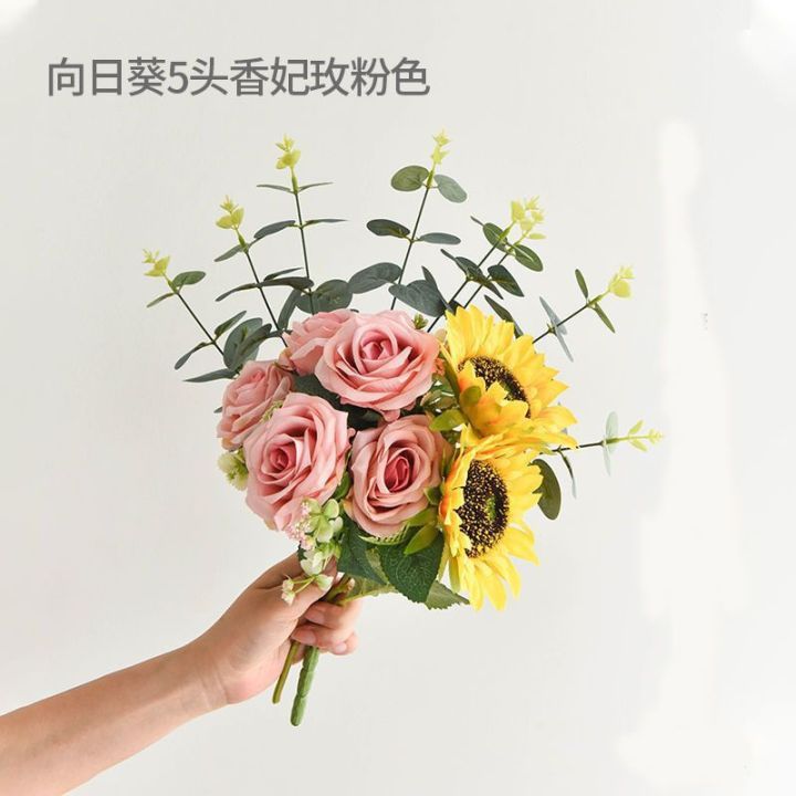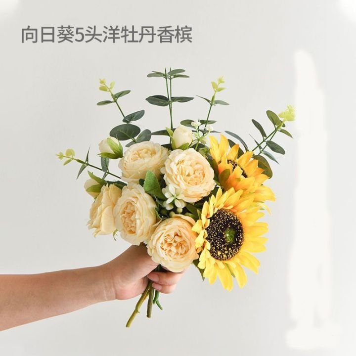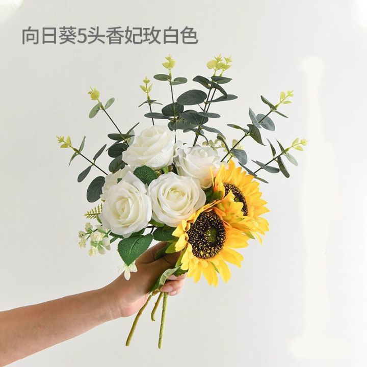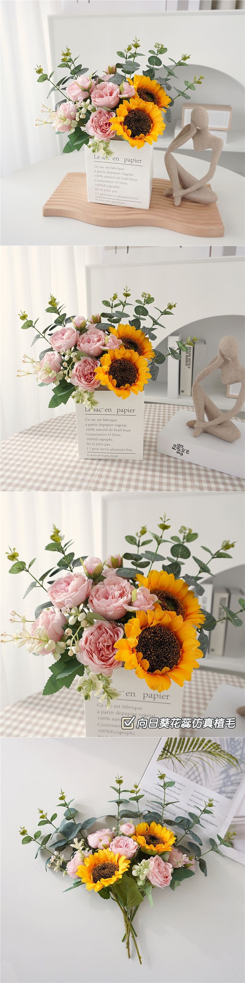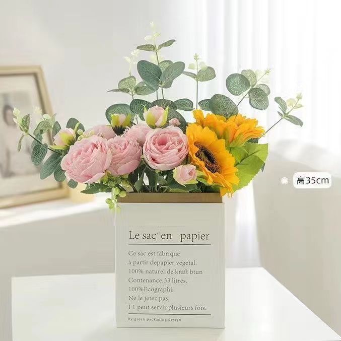 Ins 해바라기 가짜 꽃 시뮬레이션 꽃다발 홈 인테리어 거실 룸 데스크탑 종이 봉투 장식 사진 소품