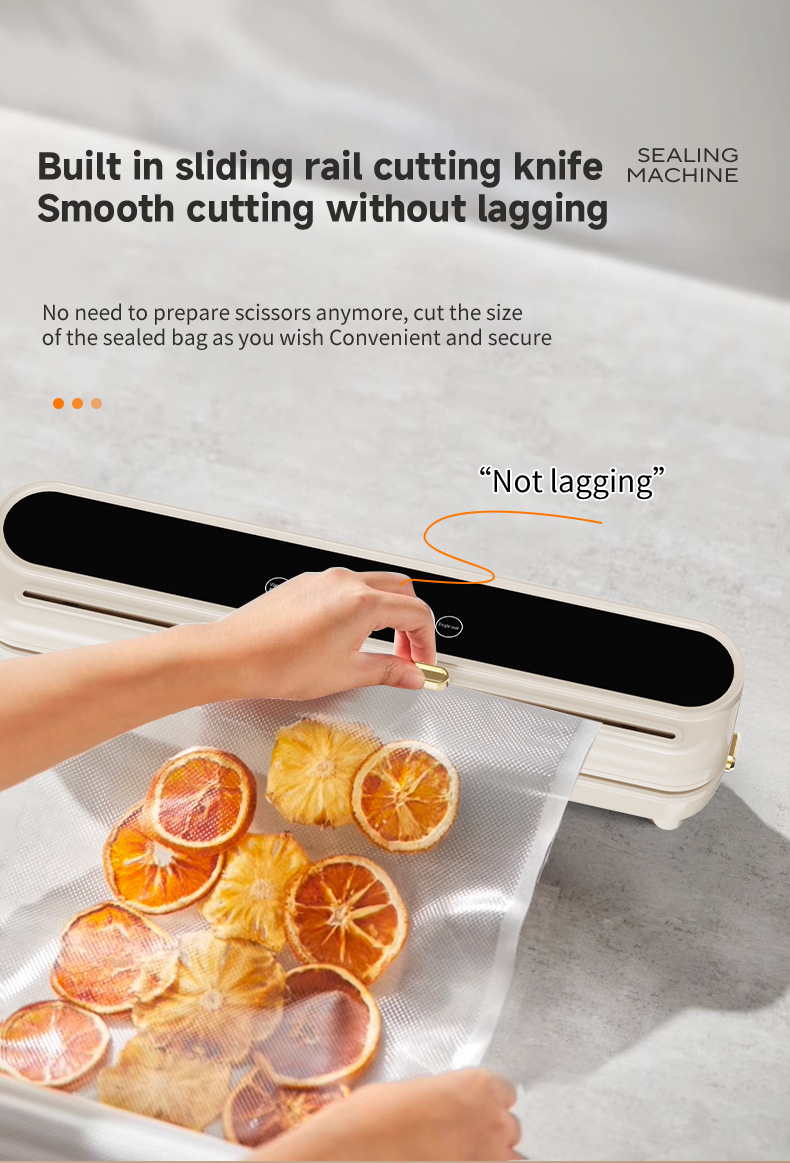 功能介绍:真空封口 干货 点抽 单封口 滑动切刀