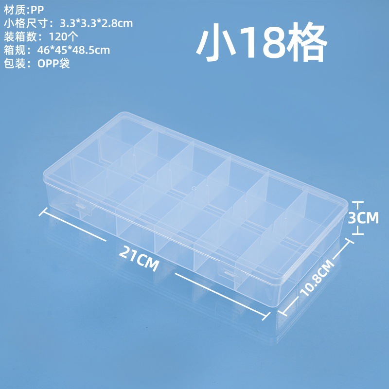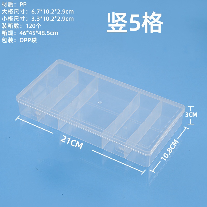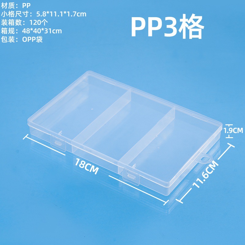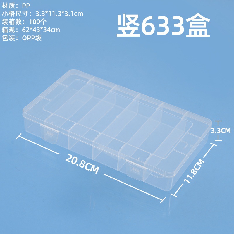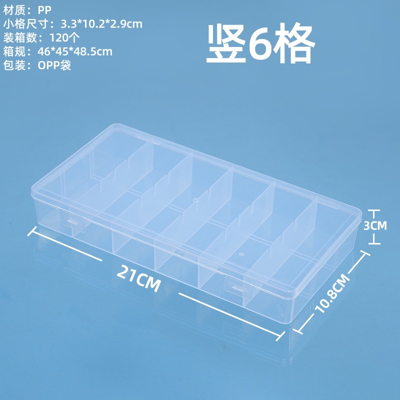 6칸의 직사각형 보석 도구 상자가 있는 투명 PP 플라스틱 상자, 낚시 장비 샘플 부품 상자, 매니큐어 포장 보관 상자스토어 가기