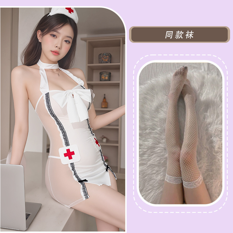 섹시한 속옷, 순수한 욕망, 간호사 유니폼, 유혹 잠옷, 작은 가슴이 더 커 보이고 침대에서 벗을 필요가 없는 잠옷 세트 2501스토어 가기