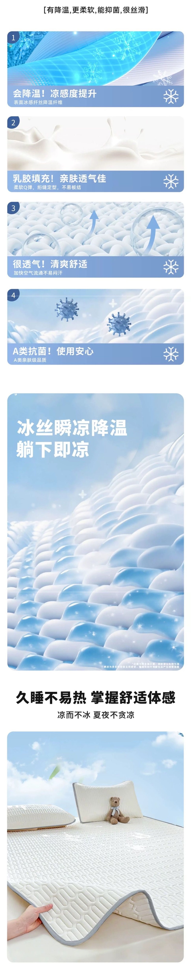 2025년 신형 라텍스 매트 싱글 3종 세트, 뜨거운 날씨에도 세탁 가능한 가정 학생 기숙사 여름 시원한 매트리스스토어 가기