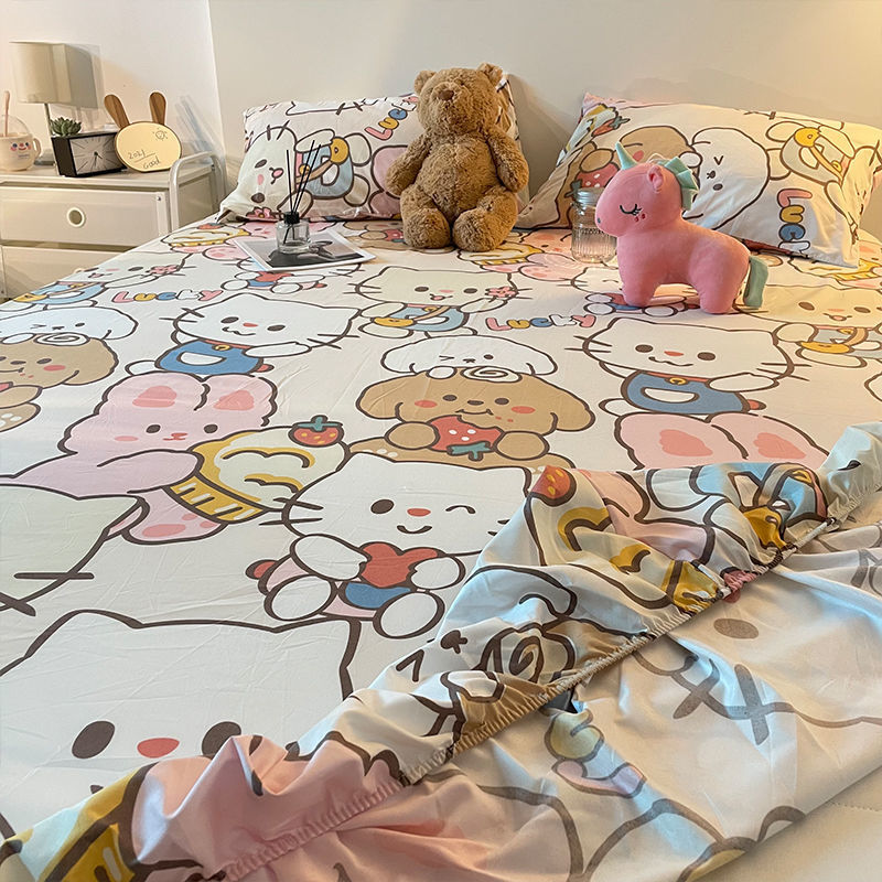 봄 귀여운 소녀 하트 고양이 침대 시트 싱글 피스 시몬스 매트리스 보호 커버 모든 항목을 포함하는 고정 침대 시트 커버 미끄럼 방지