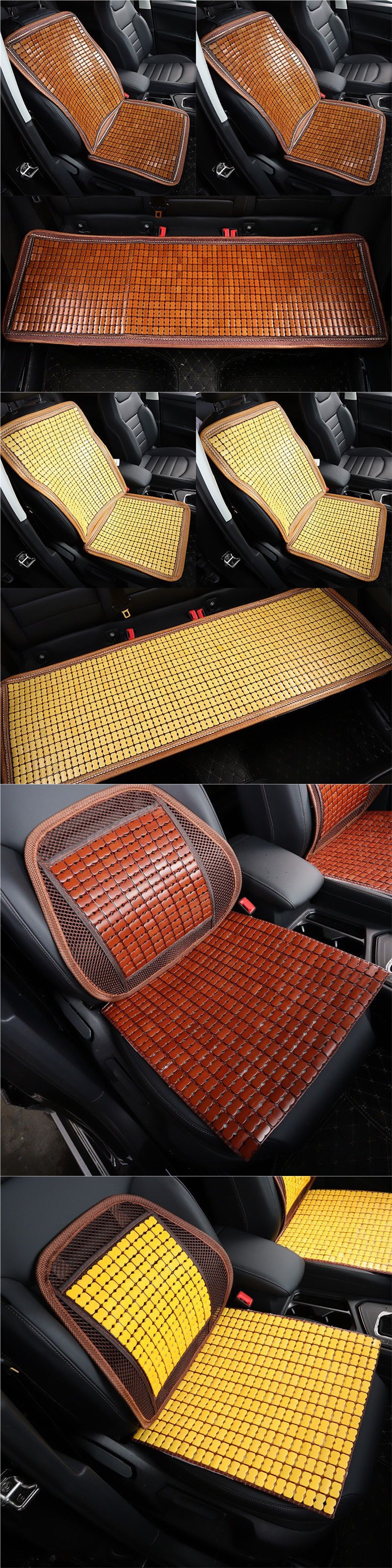 여름용 카시트 쿠션, 대나무 시트 쿨링 매트, 여름용 마작 시트 매트, 5인승 차량용 대나무 3피스 세트, 후면 범용