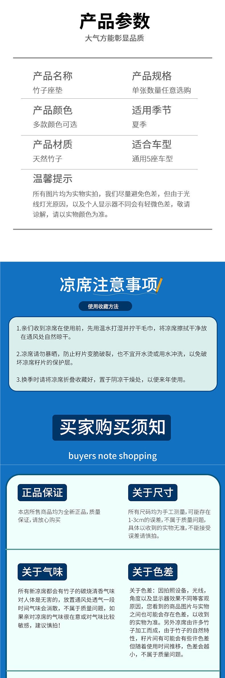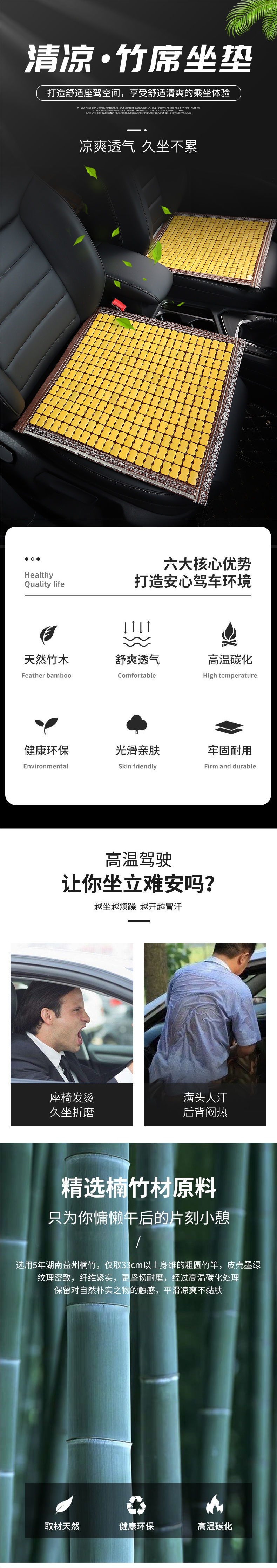 여름용 카시트 쿠션, 대나무 시트 쿨링 매트, 여름용 마작 시트 매트, 5인승 차량용 대나무 3피스 세트, 후면 범용스토어 가기