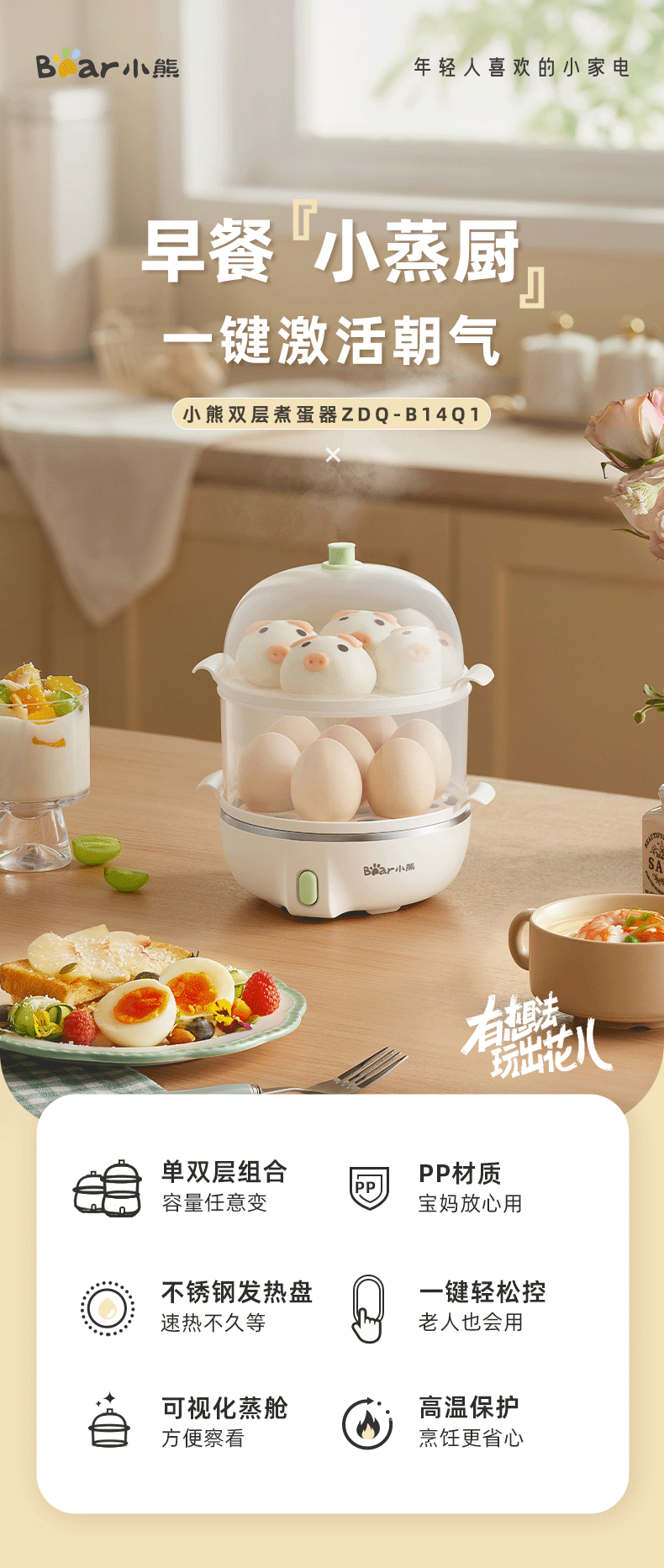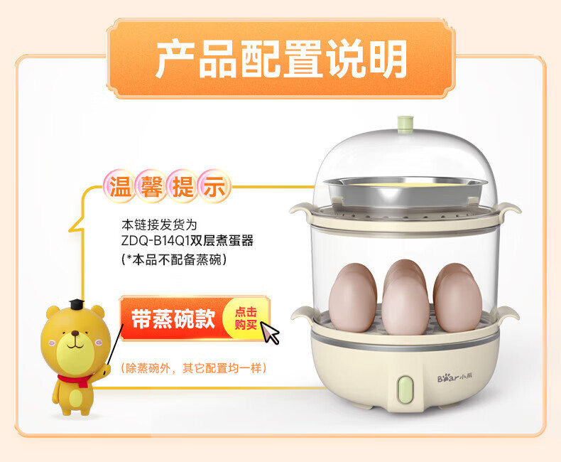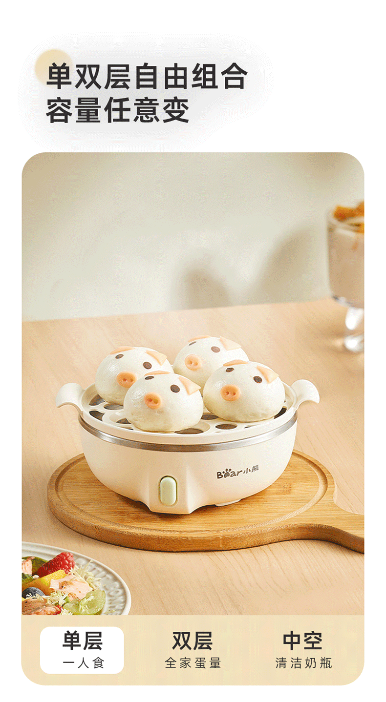 곰 계란 밥솥 가정용 더블 레이어 작은 아침 식사 계란 퍼지 계란 밥솥 지능형 다기능 휴대용 밥솥스토어 가기