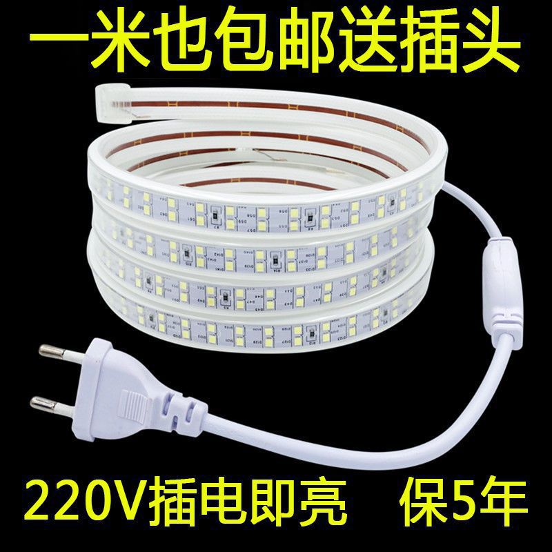 라이트 스트립 야외 LED 고전압 220V 거실 램프 홈 방수 슈퍼 밝은 1m 무료 플러그 에너지 절약 3 색 디밍