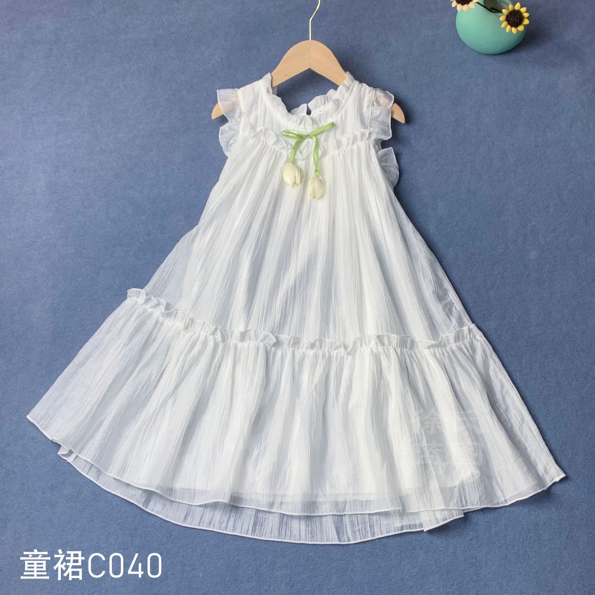 타이 염색 흰색 여름 소녀 드레스 어린이 여름 튤립 민소매 아동 의류 작은 흰색 드레스