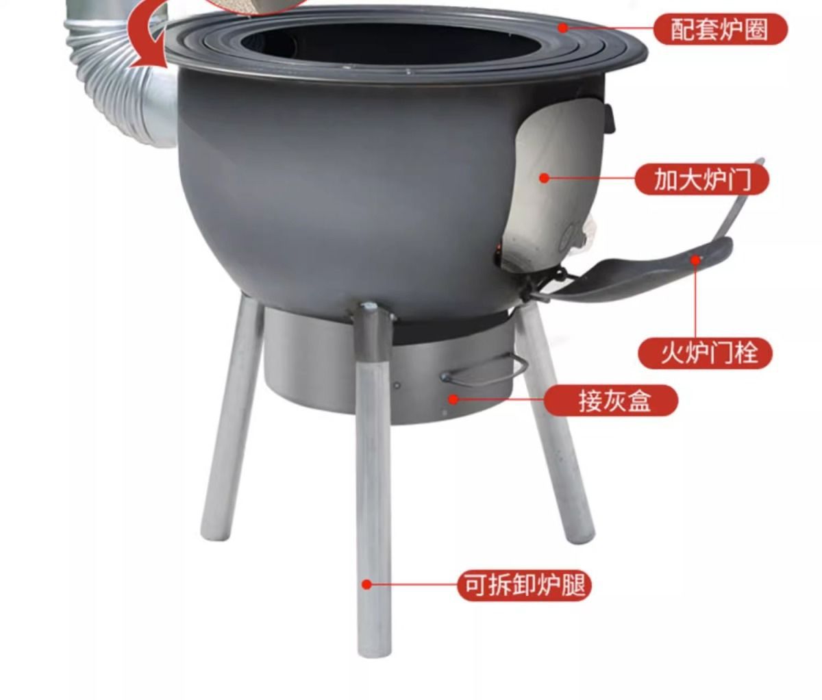 • [특대 두꺼운 일체형 스탬프 장작 난로] - 53cm 특대형 모델 + 난로링 3개 + 냄비 + 뚜껑 + 스푼