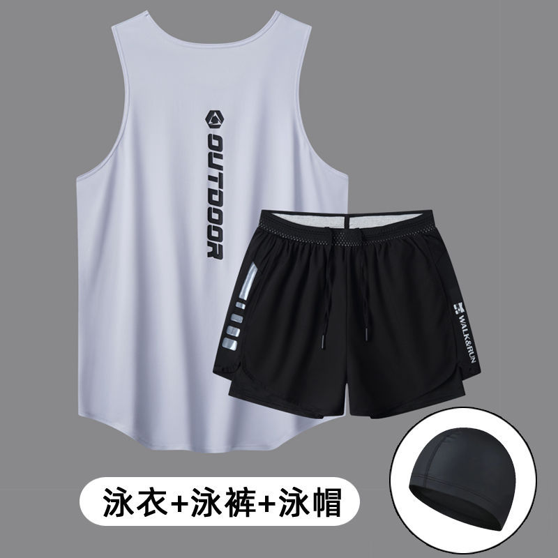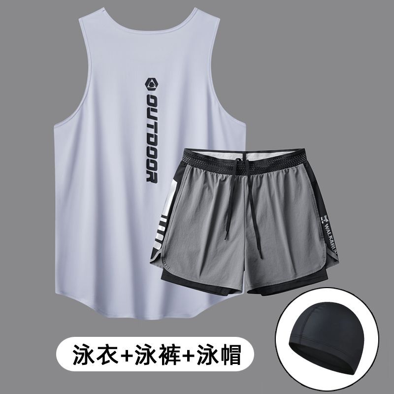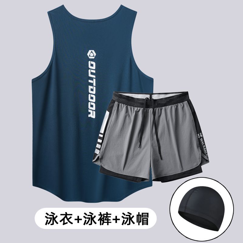 남성용 수영복 세트, 루즈하고 당황스러운 듯한 더블 레이어 수영 트렁크, 속건성 조끼, 2피스 온천 성인 수영복스토어 가기