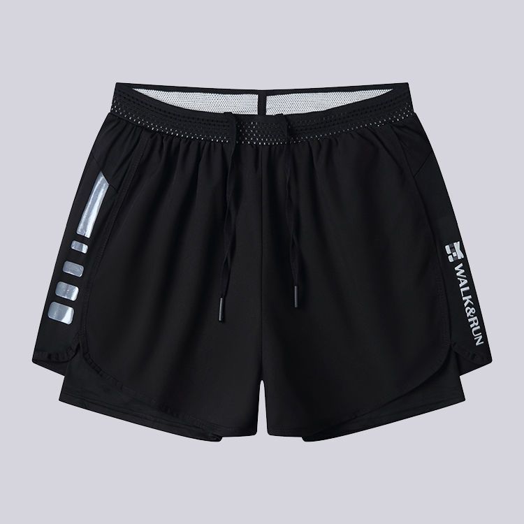 • 블랙 더블 레이어 수영 트렁크