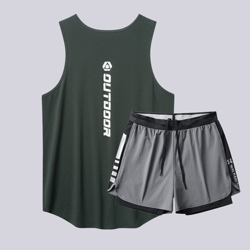 • 229 짙은 녹색 조끼 + 회색 수영 트렁크
