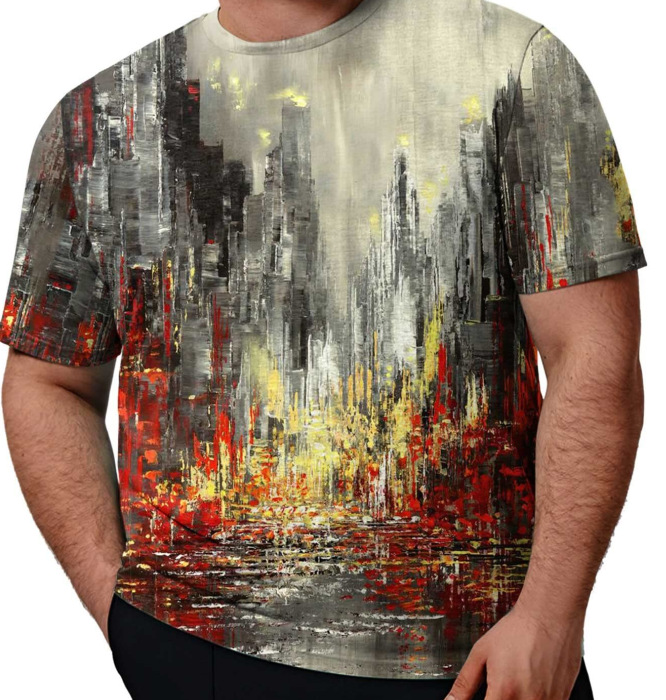 유럽과 미국의 새로운 여름 반팔 남성용 3D 문자 할로윈 테마 디지털 프린트 티셔츠 남성용 공장 직접 헤어 스타일스토어 가기