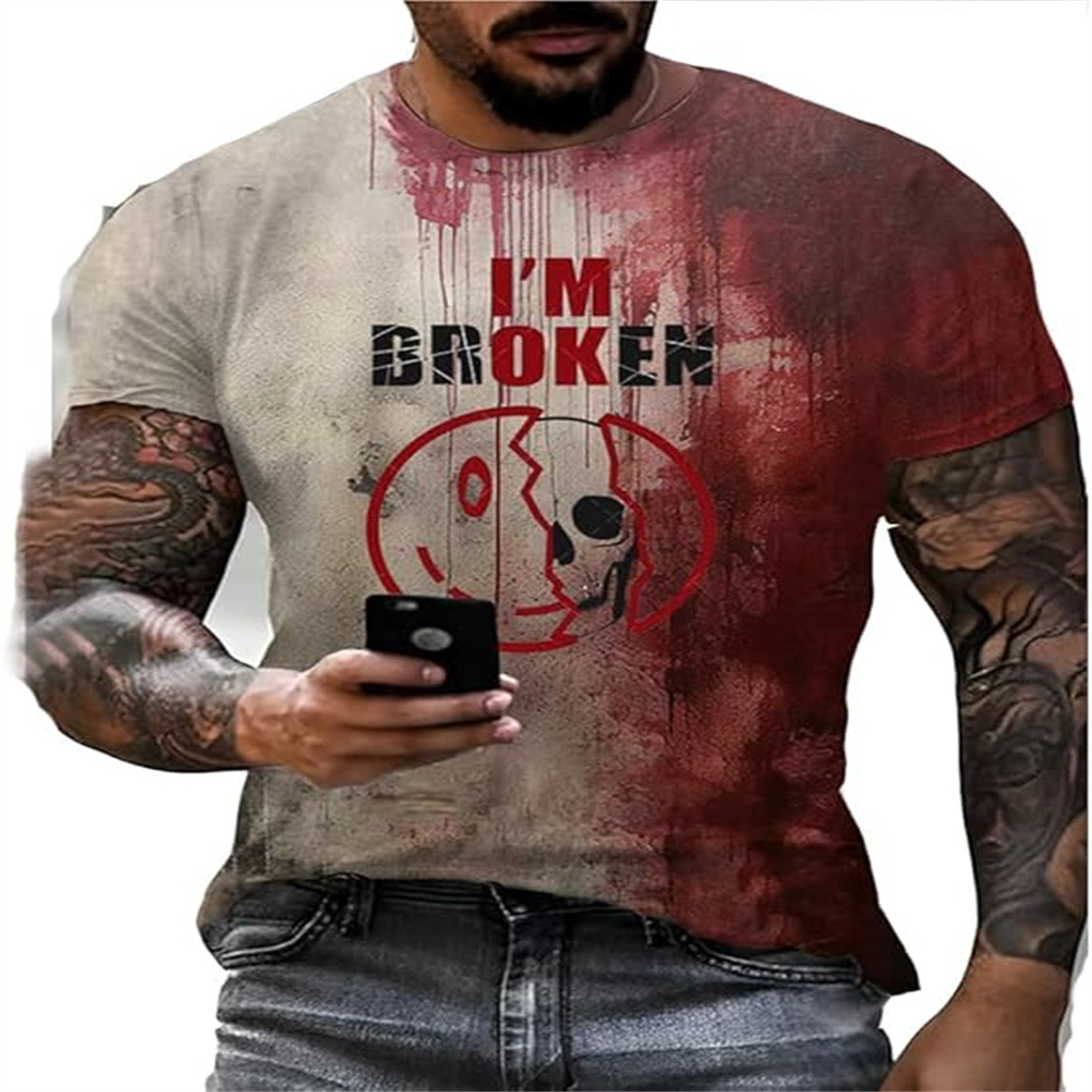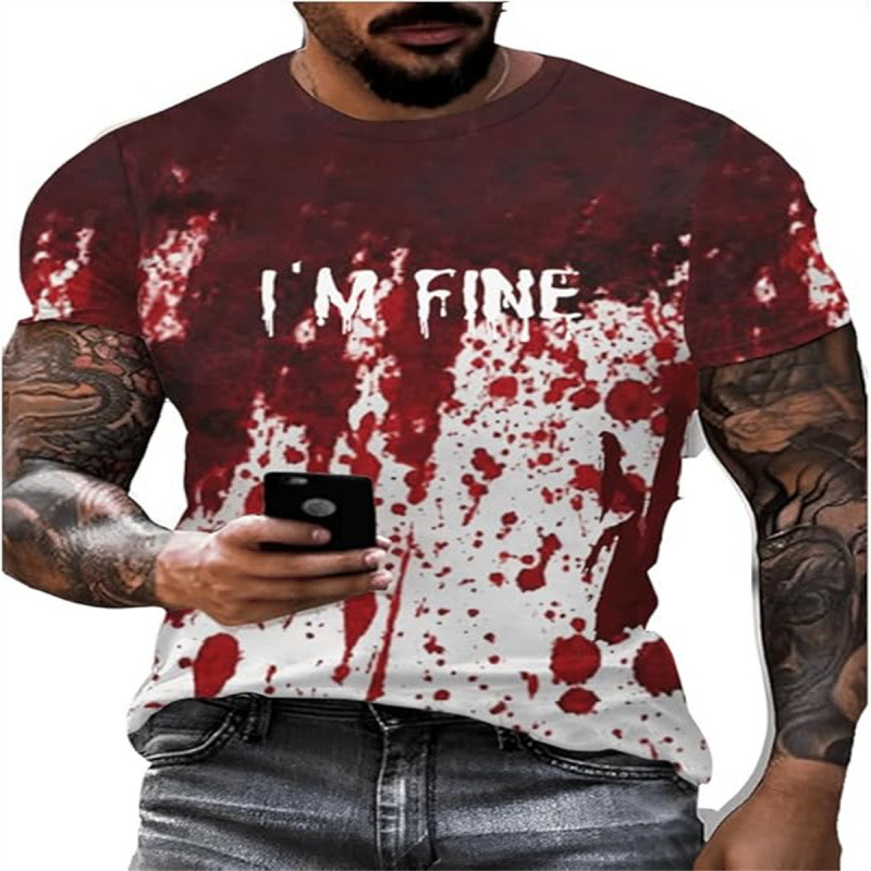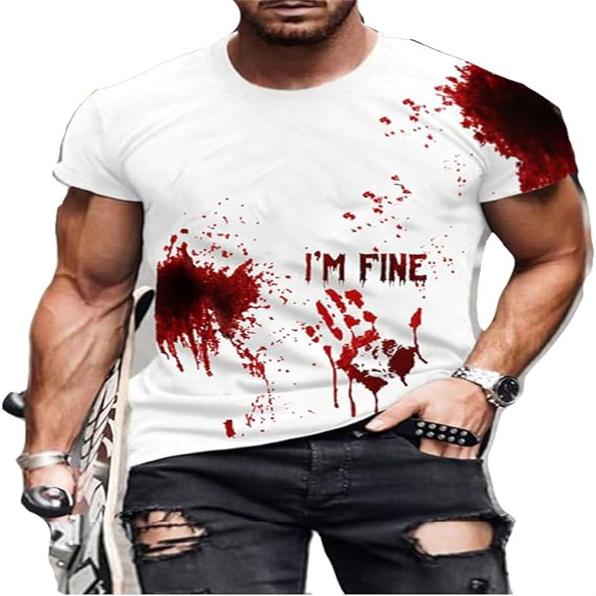 유럽과 미국의 새로운 여름 반팔 남성용 3D 문자 할로윈 테마 디지털 프린트 티셔츠 남성용 공장 직접 헤어 스타일