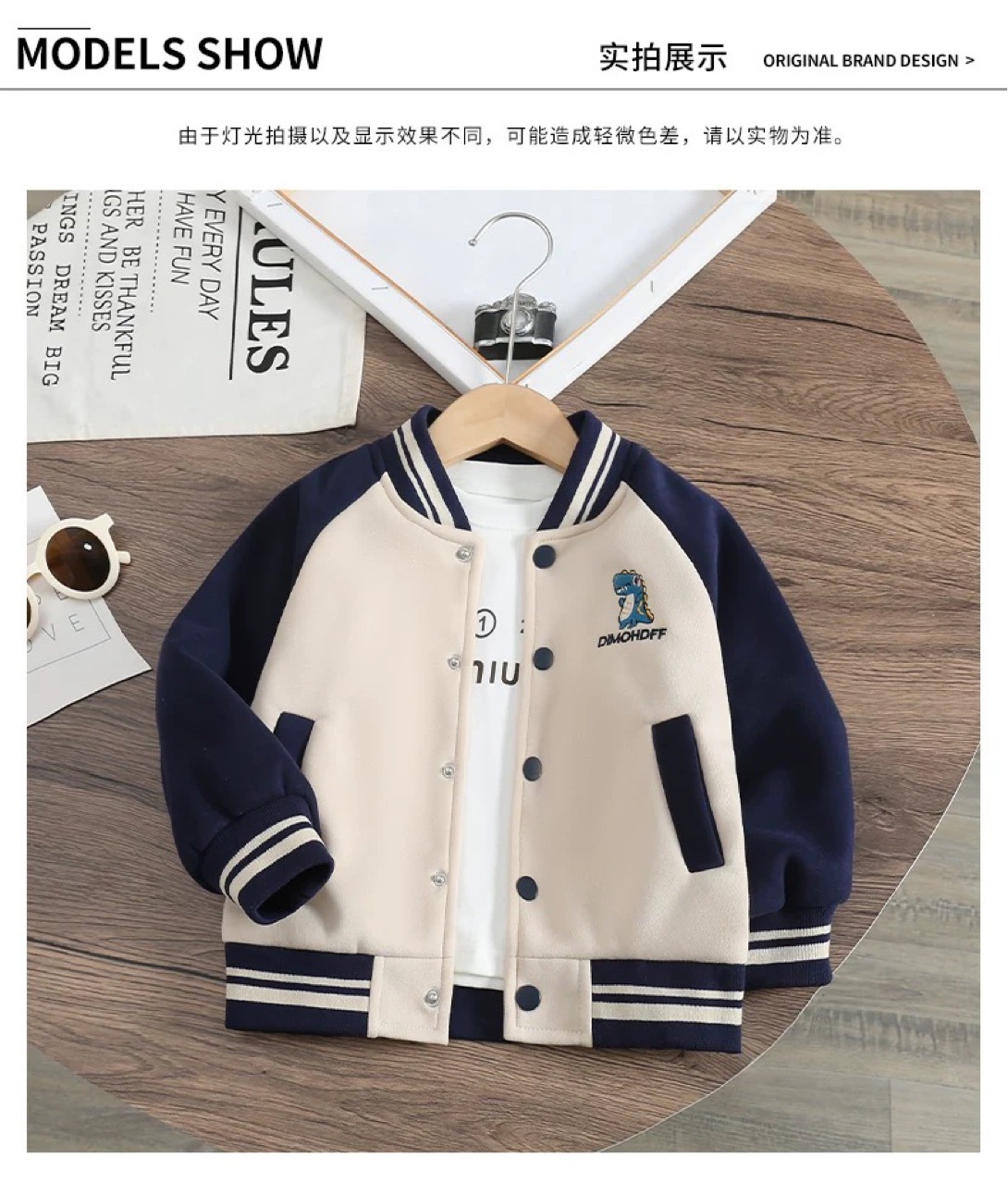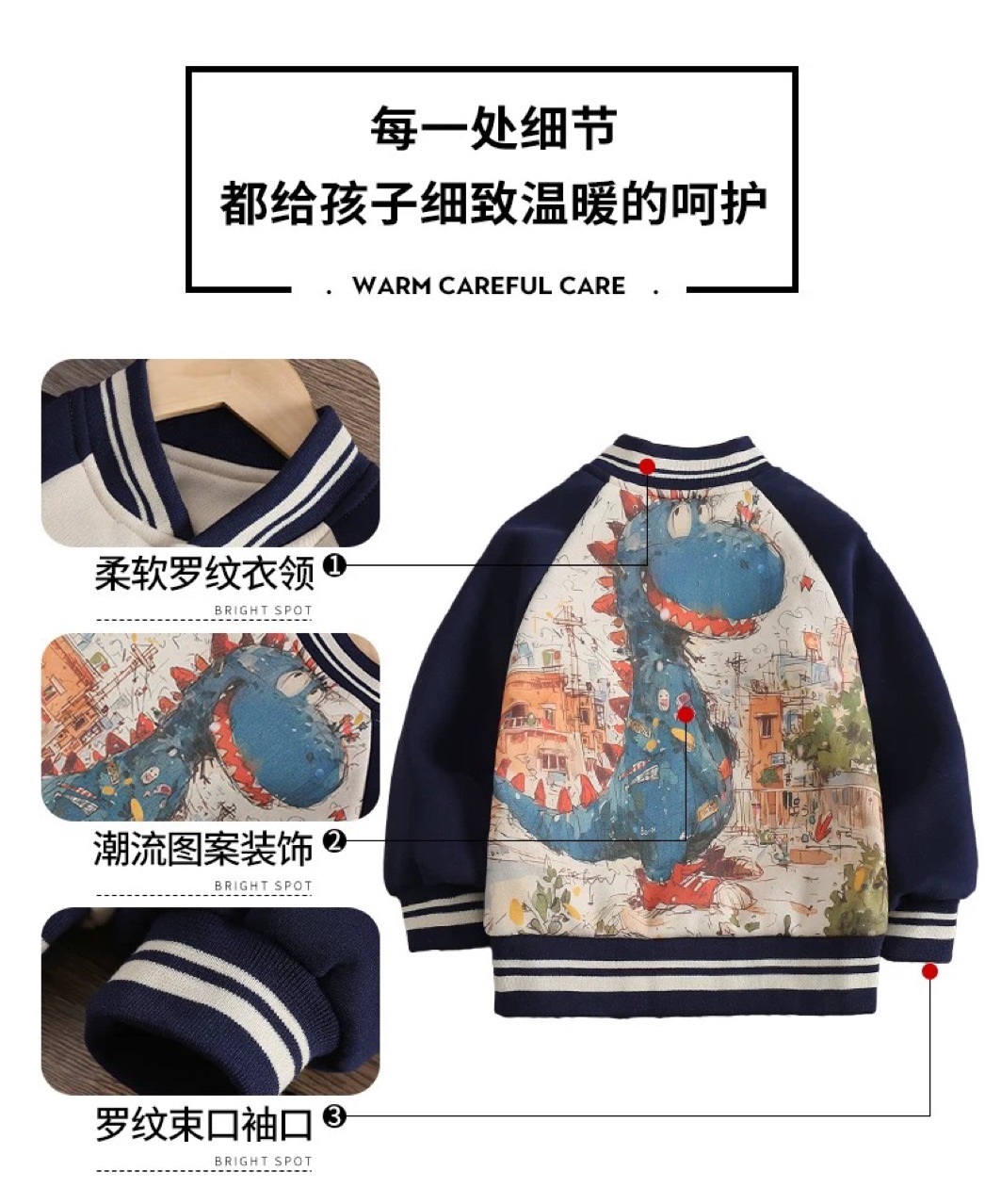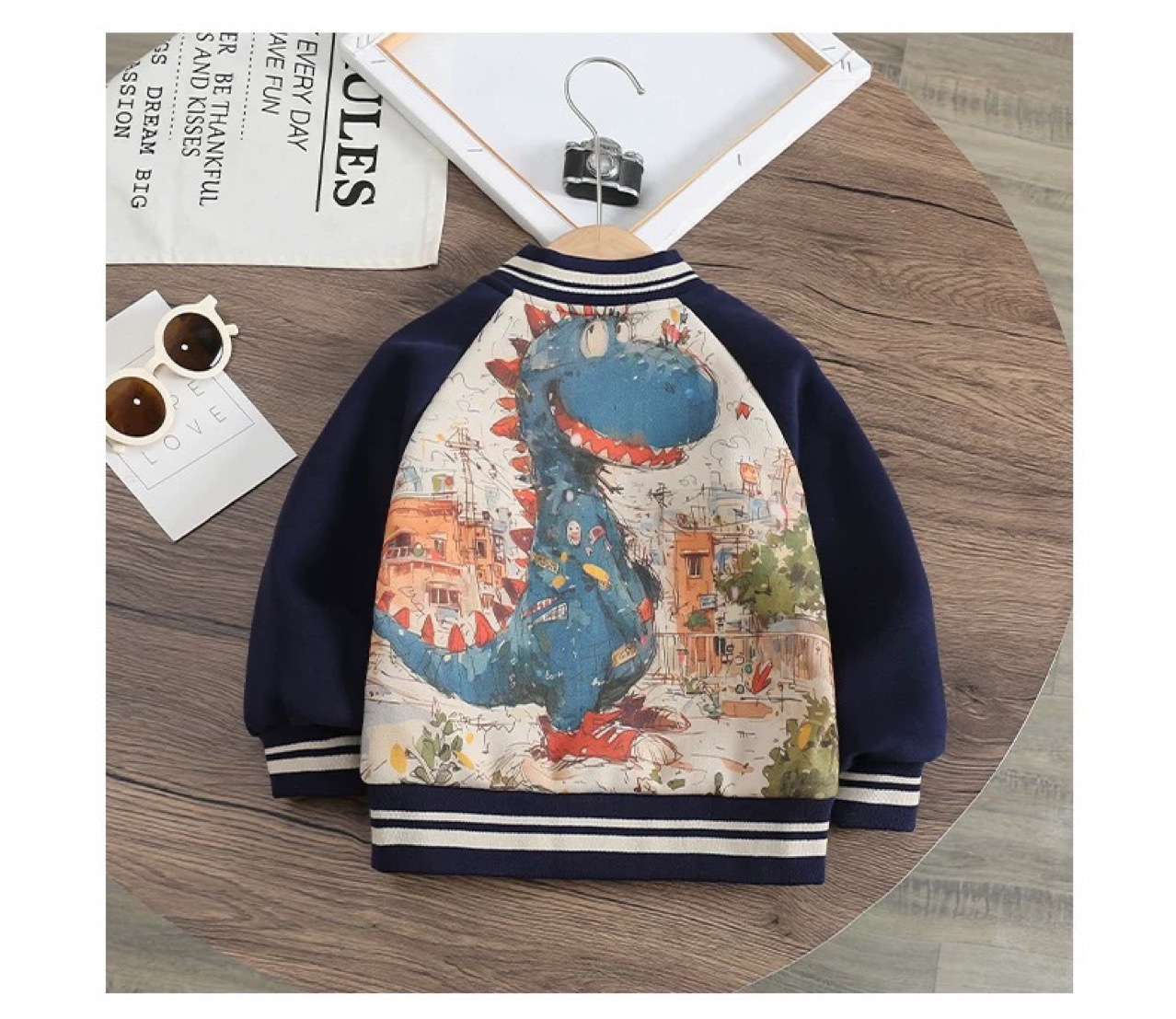 아동 의류 아동 봄 재킷 2025 새로운 소년 만화 공룡 재킷 봄, 가을 유행 인터넷 연예인 야구 유니폼스토어 가기