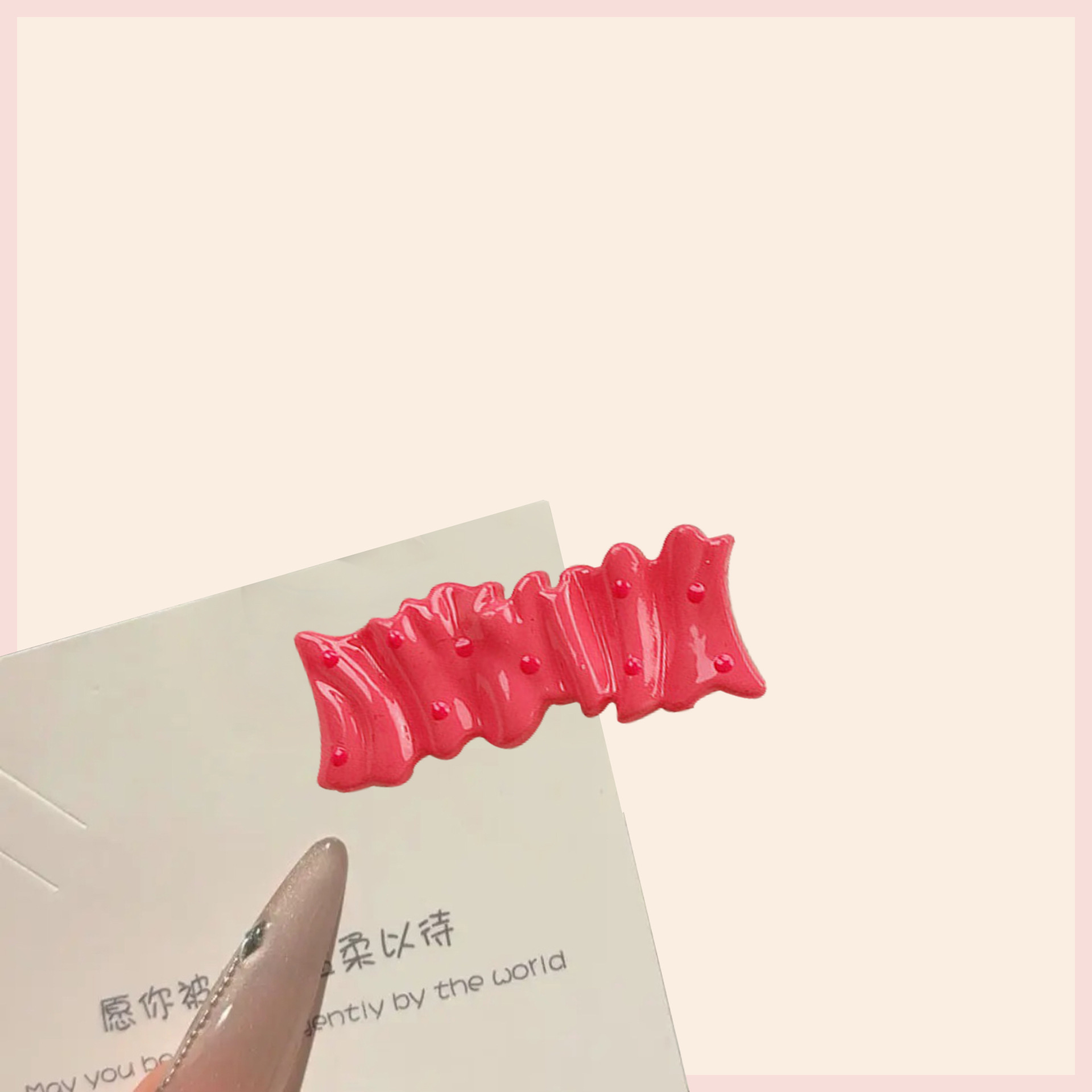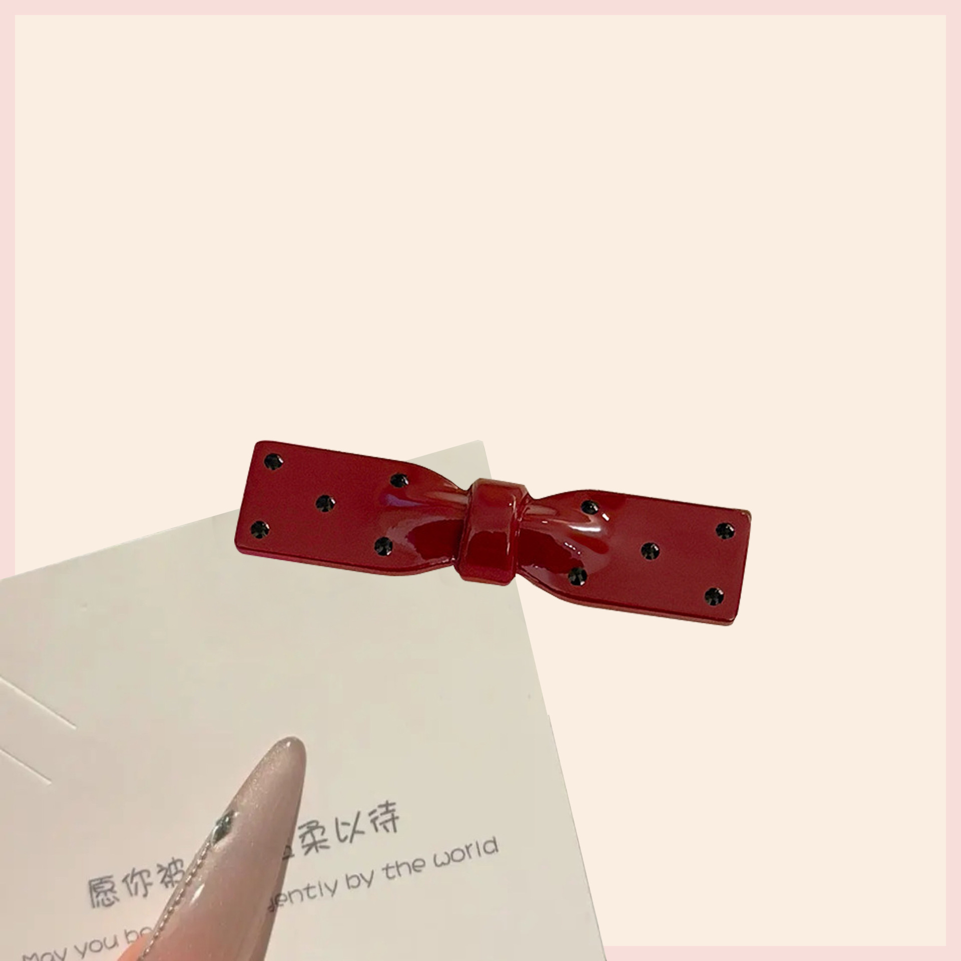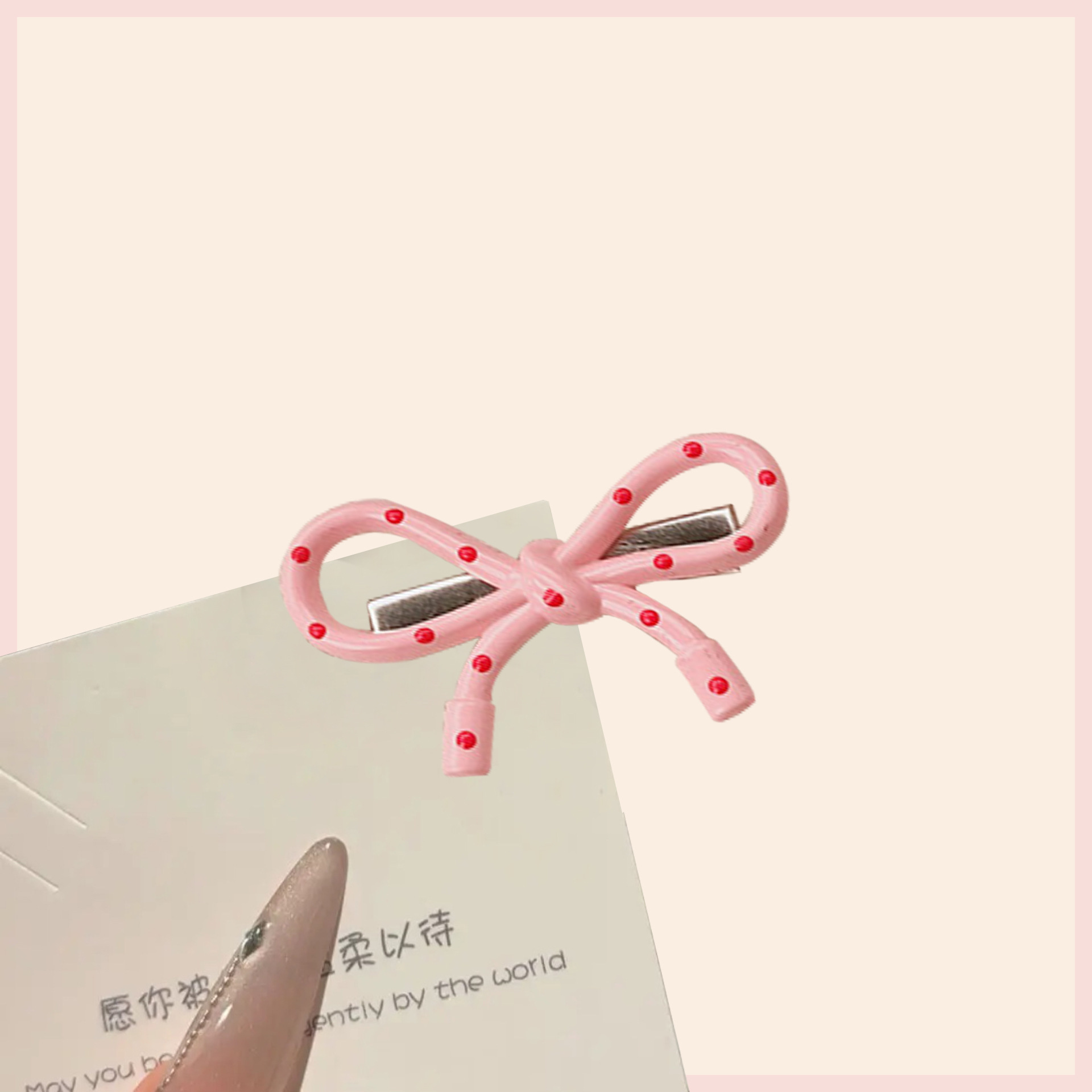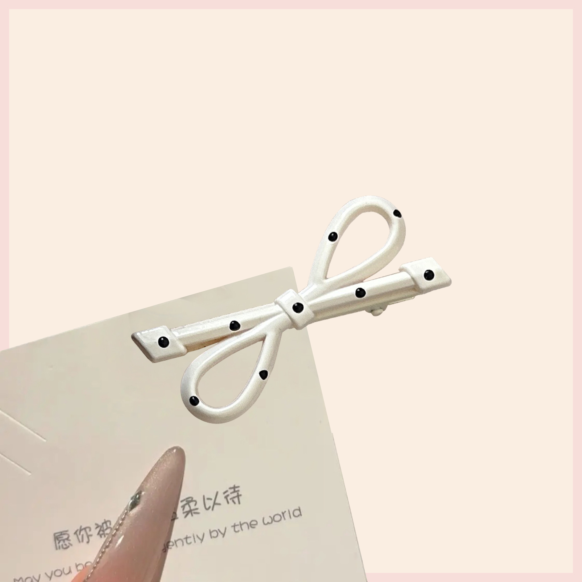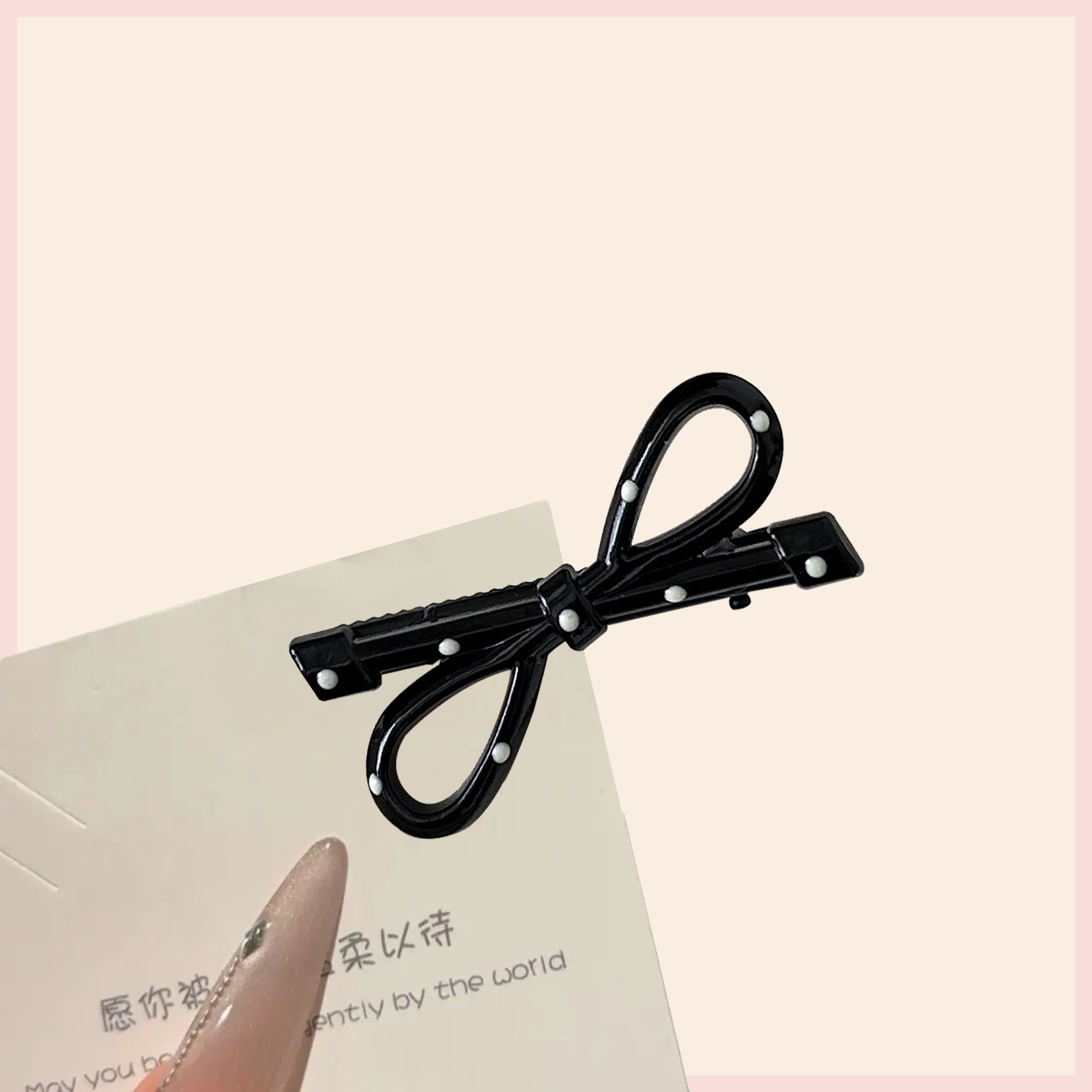 여성용 달콤한 폴카 도트 리본 타원형 머리핀, 이마 앞머리 클립, 귀여운 사이드 머리핀, 머리핀, 덕빌 클립, 머리 장식