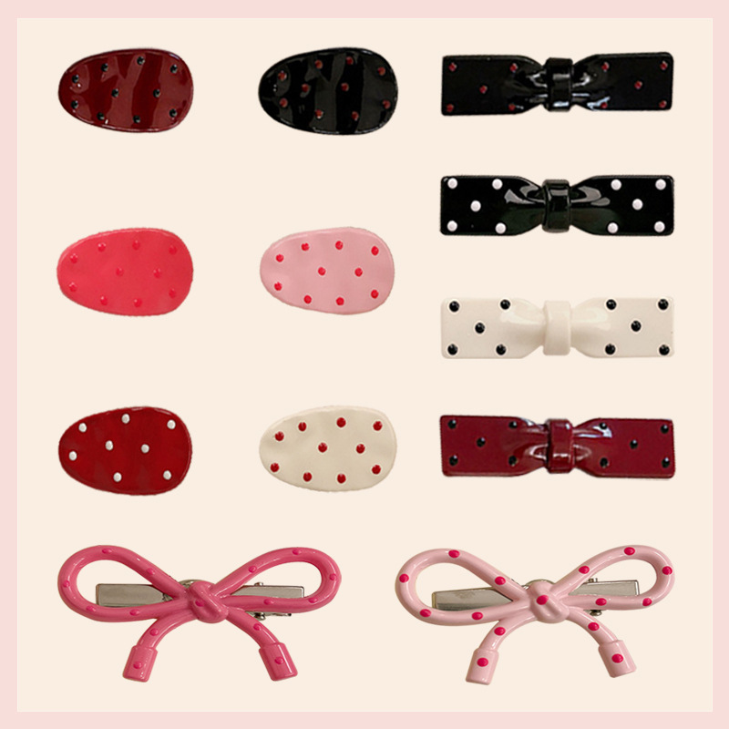 여성용 달콤한 폴카 도트 리본 타원형 머리핀, 이마 앞머리 클립, 귀여운 사이드 머리핀, 머리핀, 덕빌 클립, 머리 장식스토어 가기