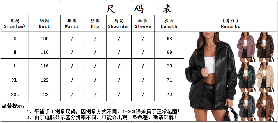 2025 새로운 Amazon 독립 스테이션 인기 PU 가죽 자켓 여성용 긴 소매 옷깃 지퍼 사이드 포켓 캐주얼 자켓스토어 가기