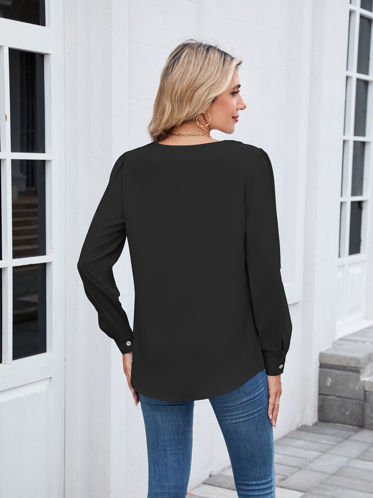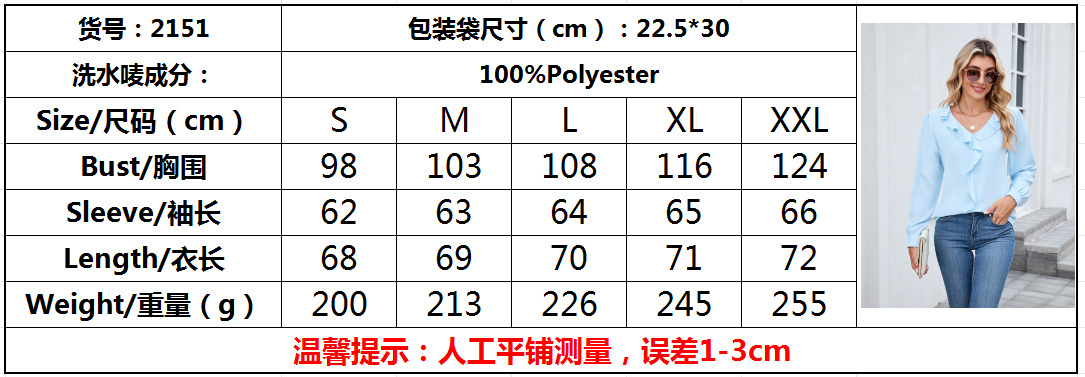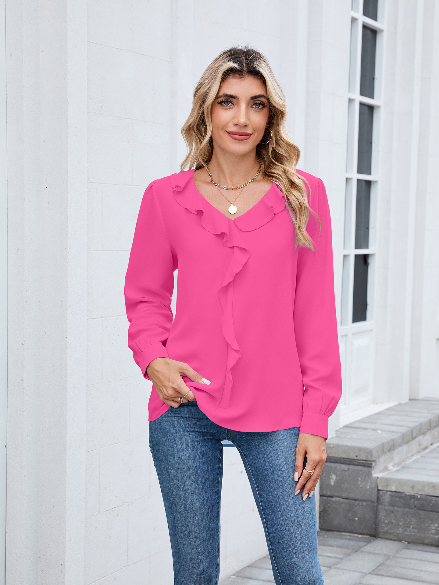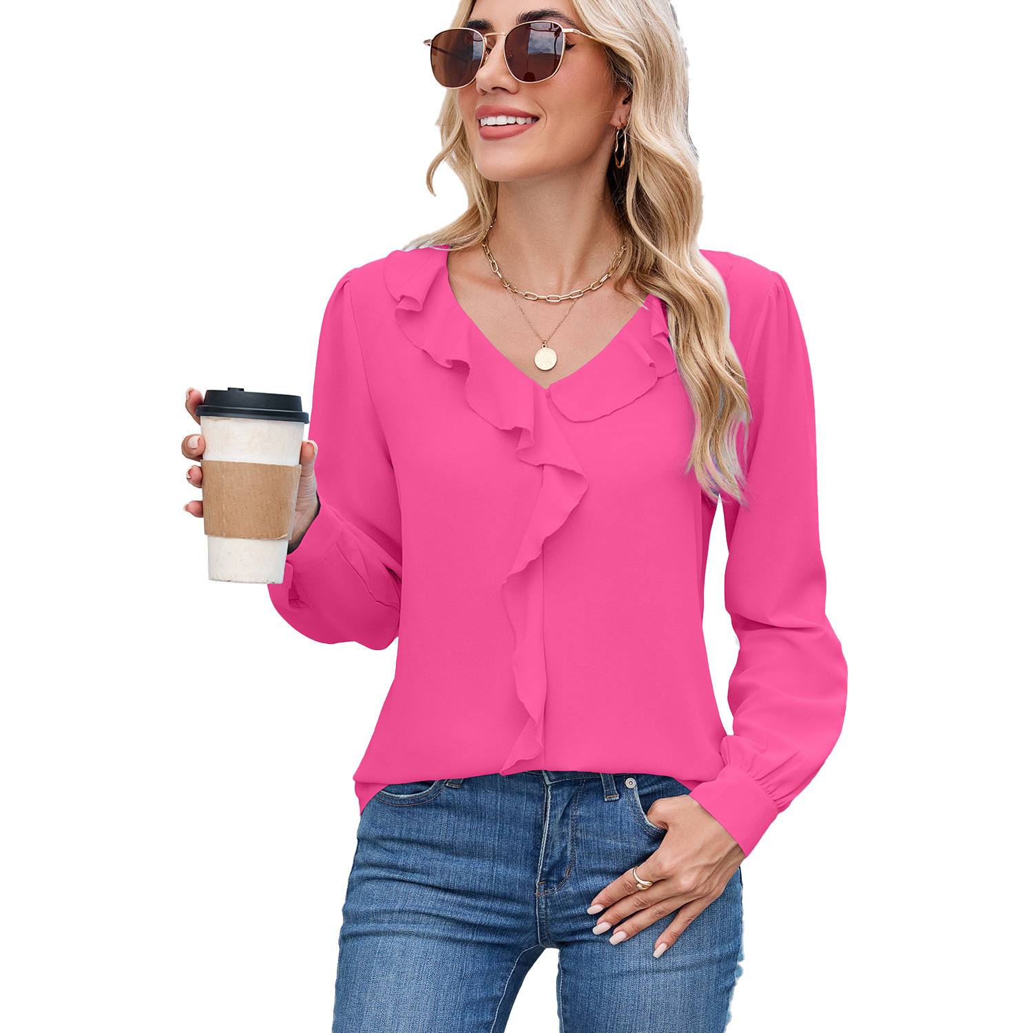 아마존 유럽과 미국의 국경 간 대외 무역 2025 쉬폰 셔츠 긴팔 V 넥 주름 프릴 여성 셔츠 탑스토어 가기