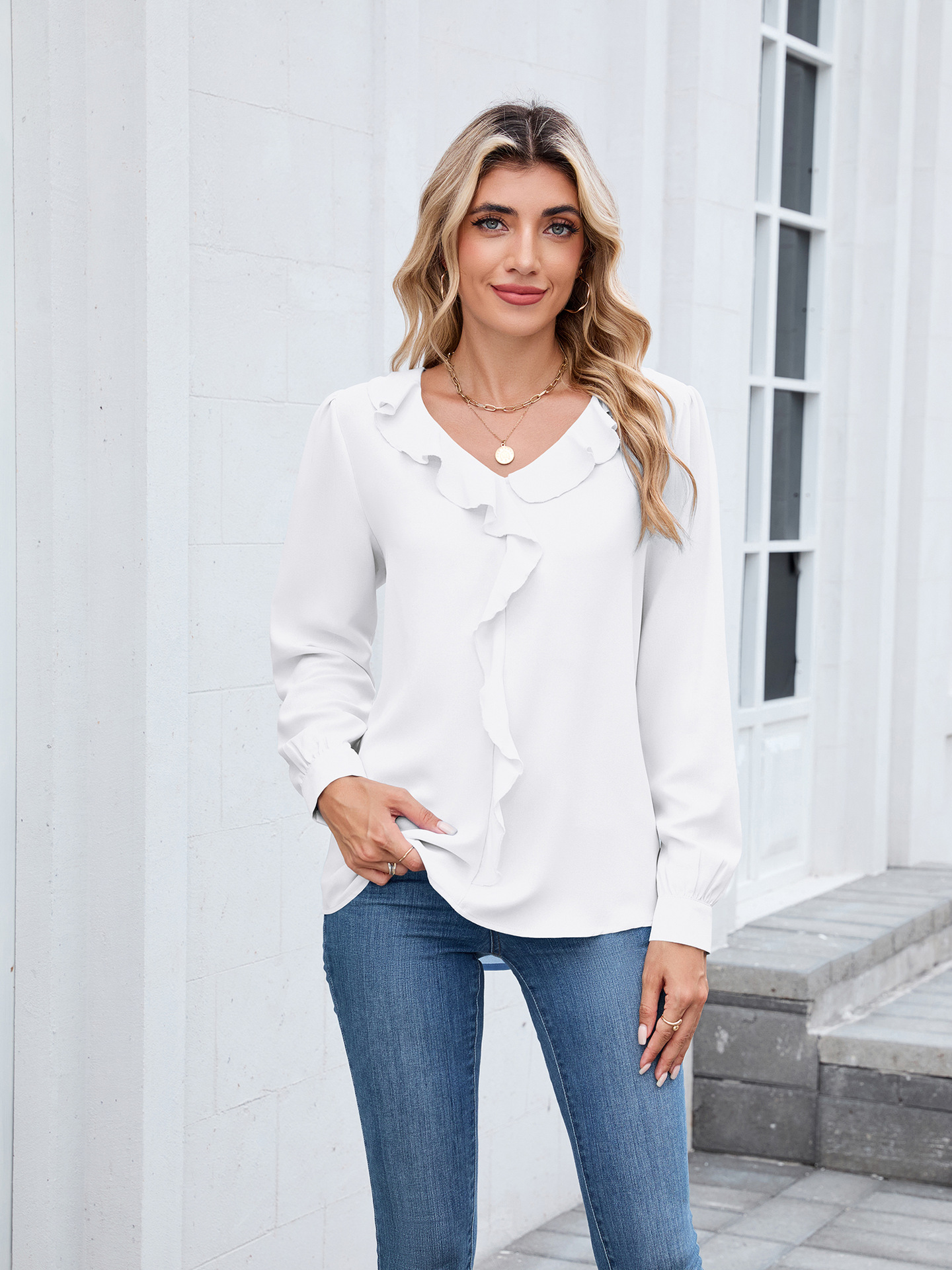 아마존 유럽과 미국의 국경 간 대외 무역 2025 쉬폰 셔츠 긴팔 V 넥 주름 프릴 여성 셔츠 탑
