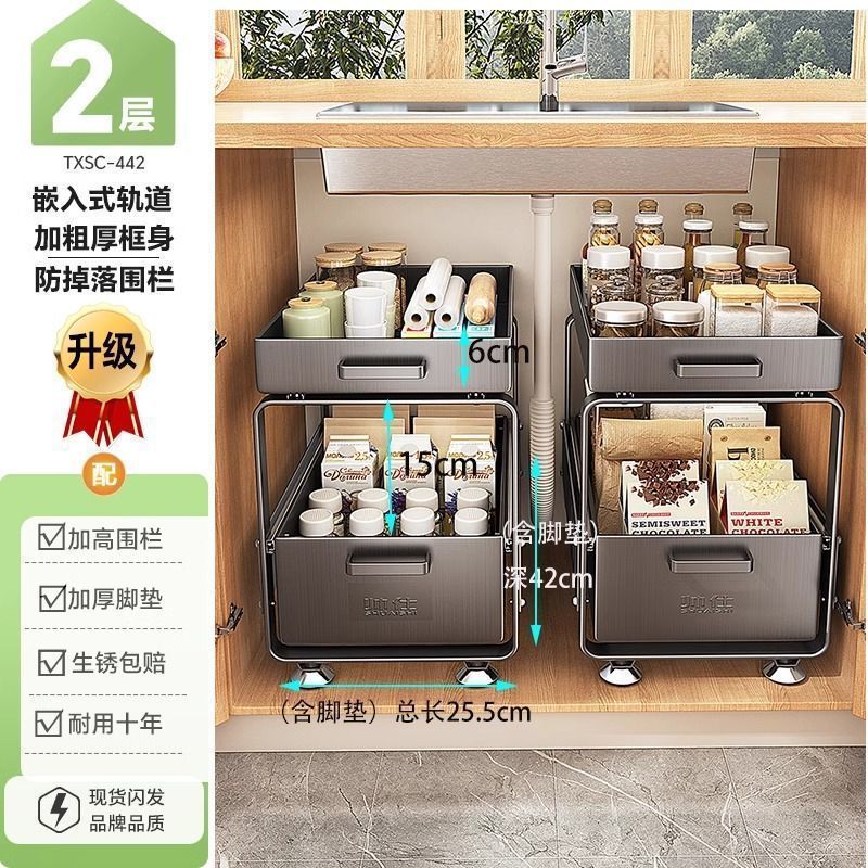 공장 직접 판매 주방 싱크대 아래 수납 선반 조미료 접시 풀아웃 싱크대 캐비닛 바구니 계층형 수납스토어 가기