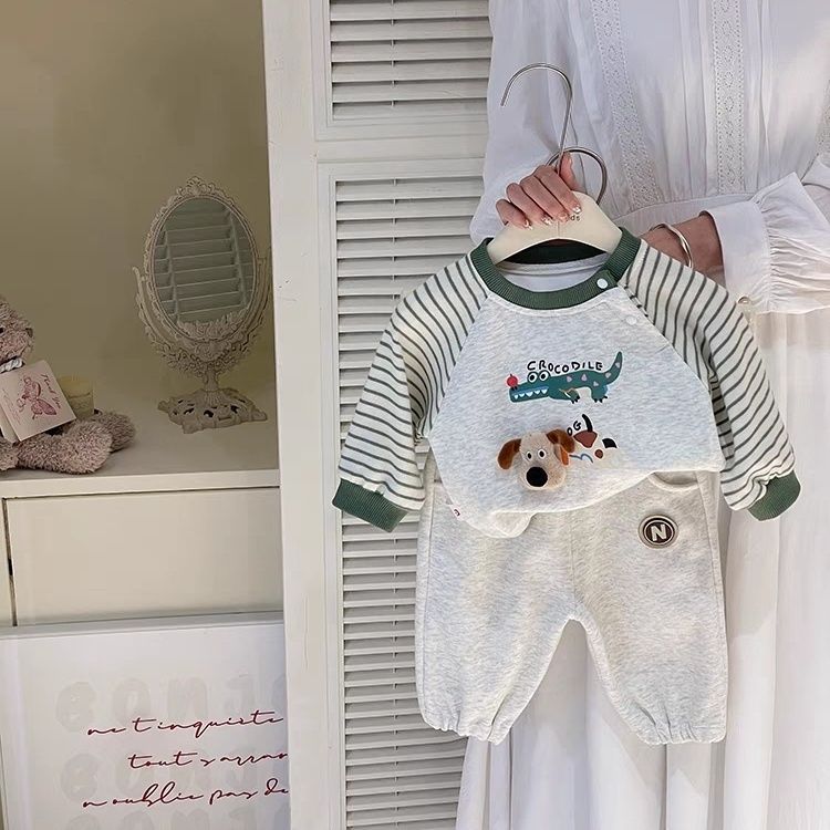 순면 가을 신작 아동용 스플릿 스웨트 셔츠 정장 남성과 여성 아기 유형 A 투피스 의류 유아 및 아동 의류스토어 가기