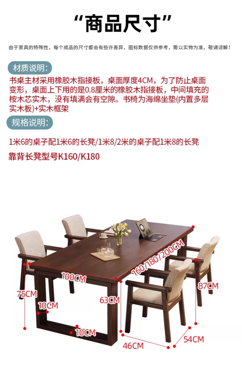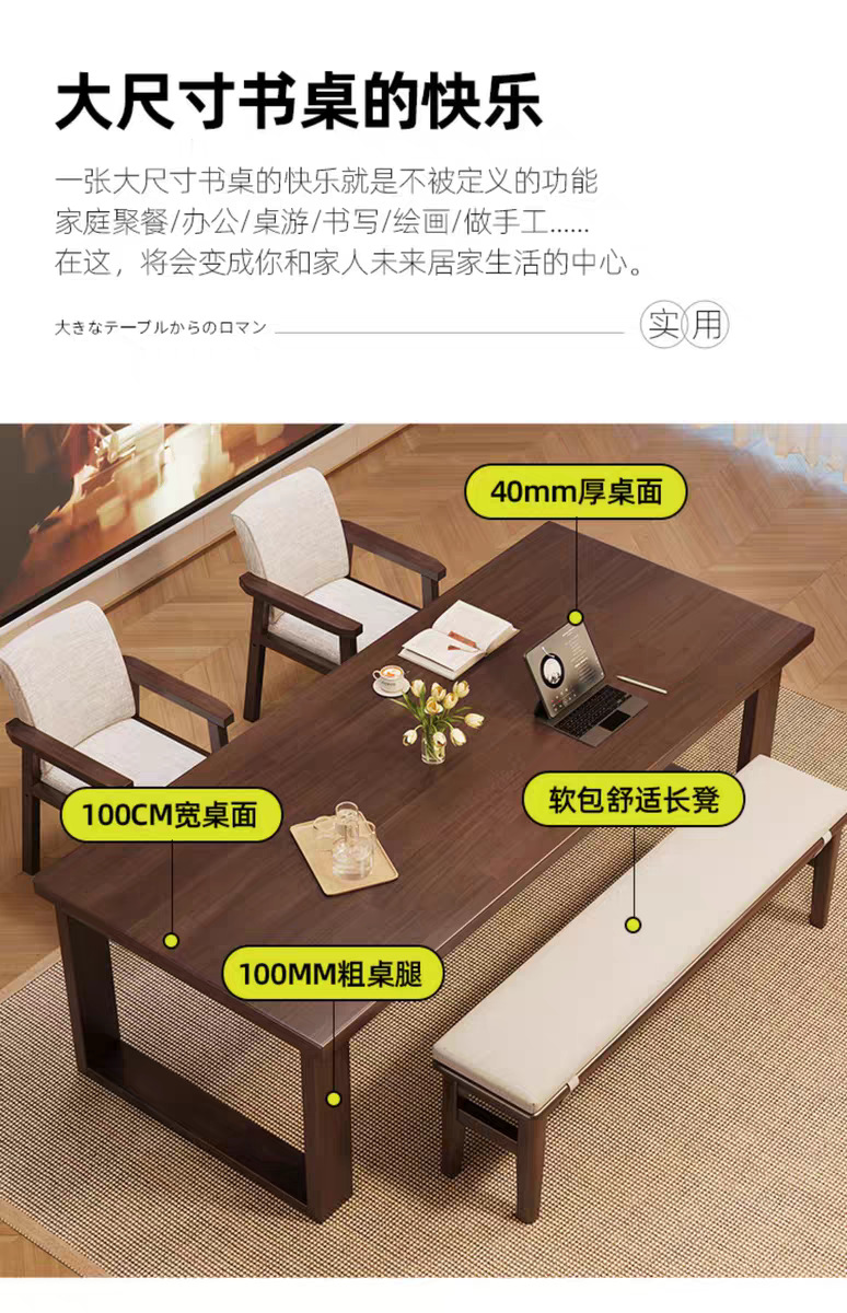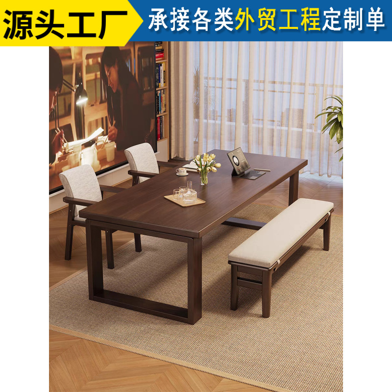 새로운 중국 스타일의 단단한 나무 대형 긴 책상, 가정용 식탁, 일체형 작업대, 거실 대형 보드 테이블, 간단한 사무실 책상