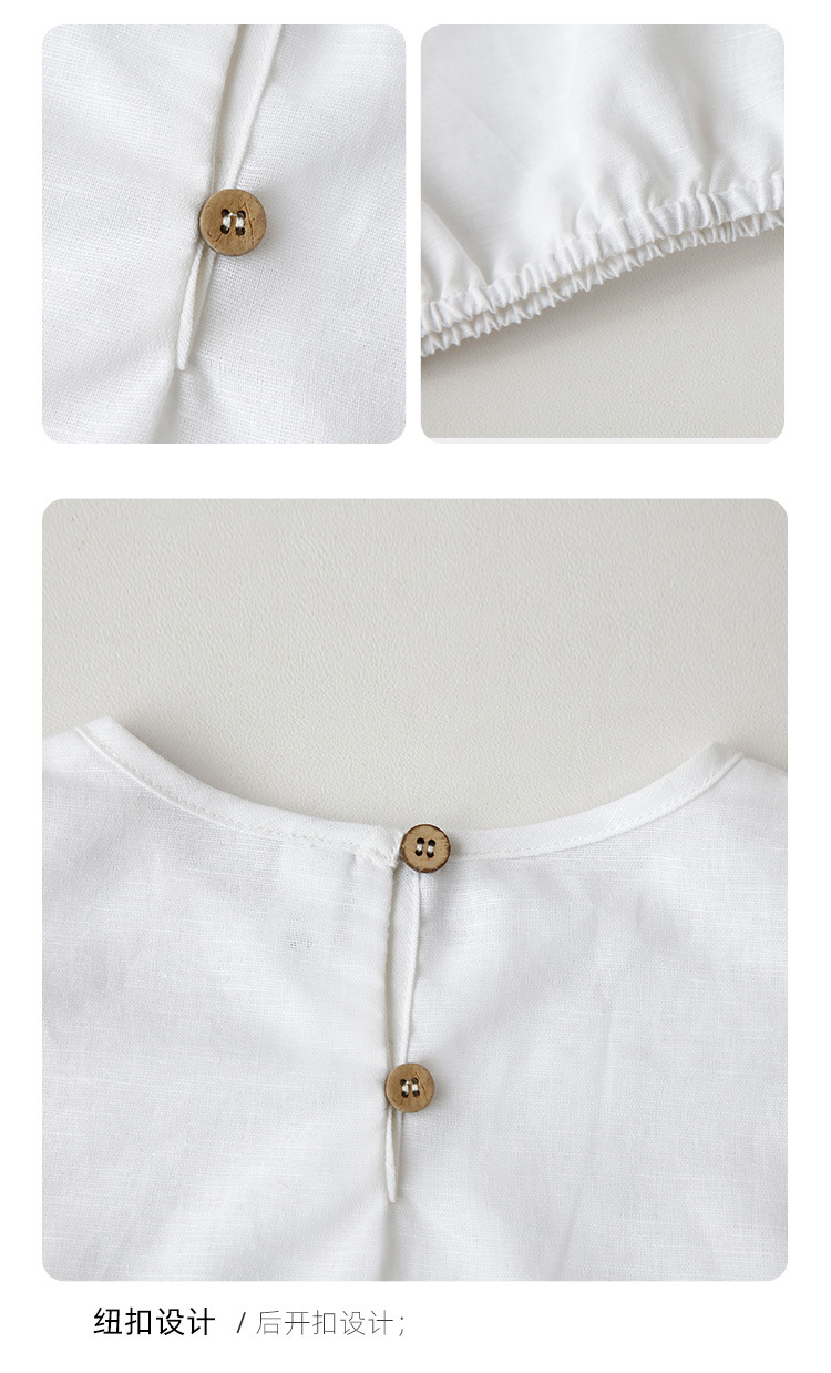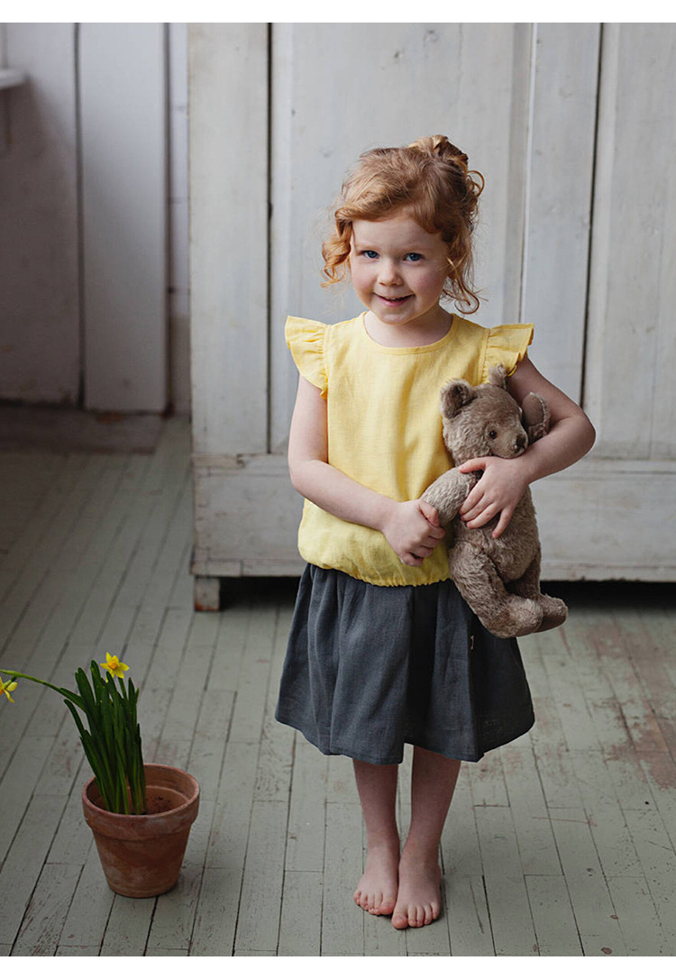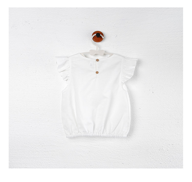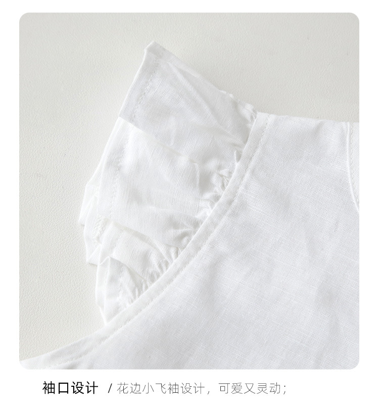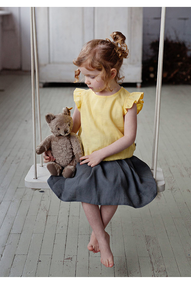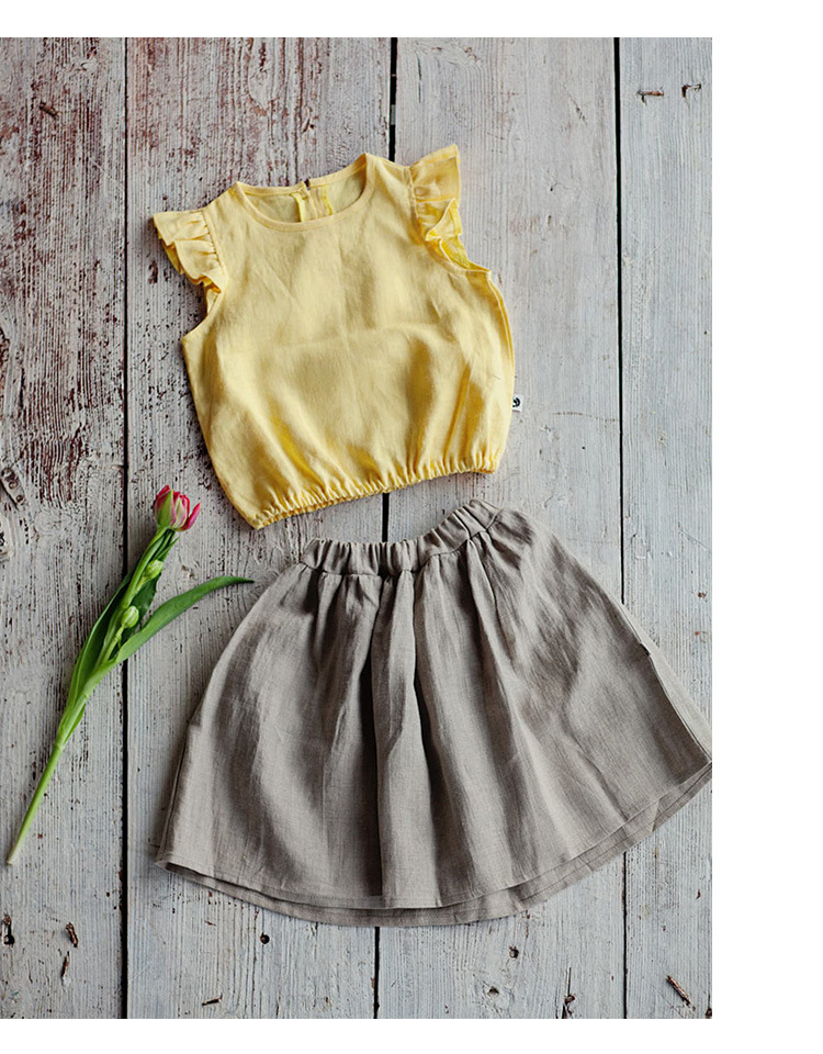 여아 의류 노란색 면 및 린넨 셔츠 여름 반팔 티셔츠 작은 플라잉 슬리브 귀여운 인형 셔츠 유행 린넨 여아상의