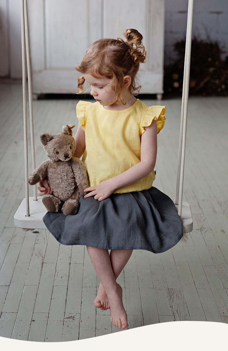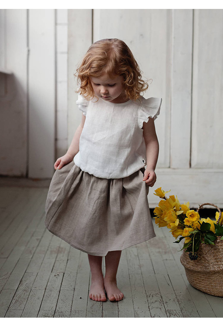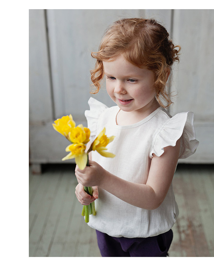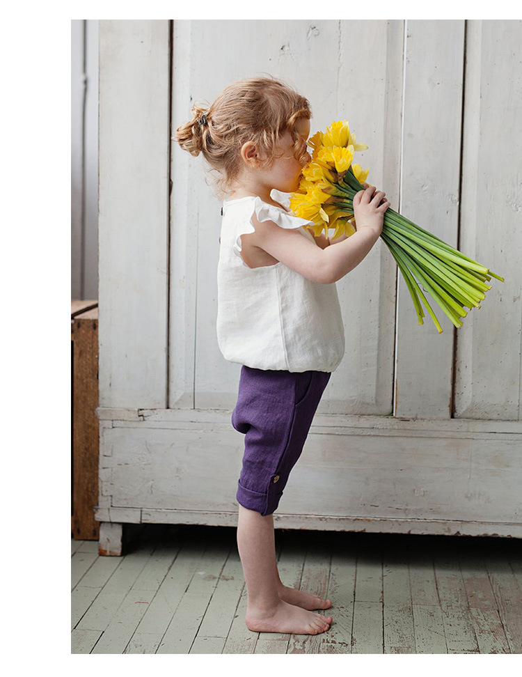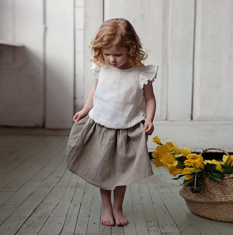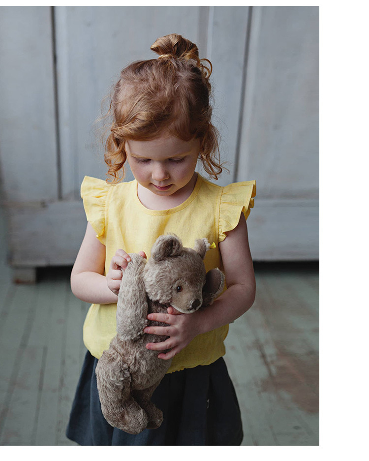 여아 의류 노란색 면 및 린넨 셔츠 여름 반팔 티셔츠 작은 플라잉 슬리브 귀여운 인형 셔츠 유행 린넨 여아상의