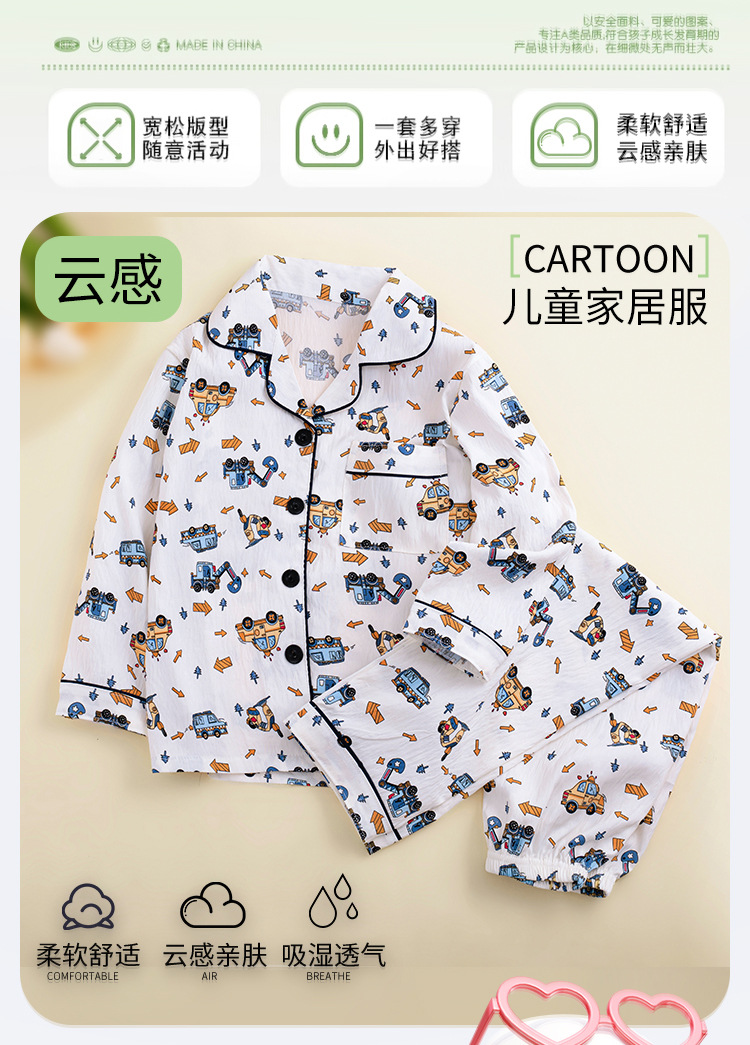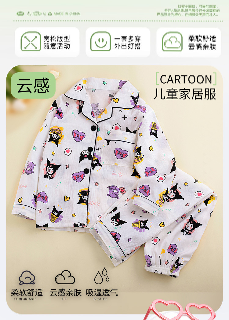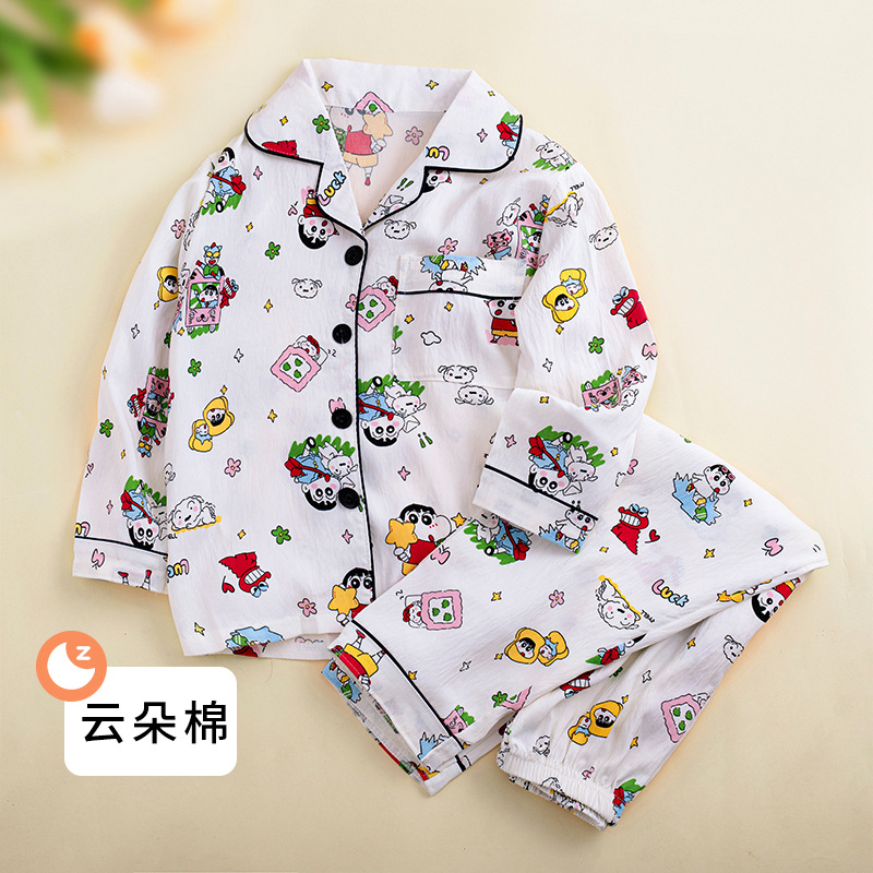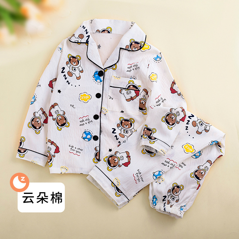 봄과 가을 어린이 잠옷 얇은 구름 면화 긴팔 카디건 옷깃 귀여운 만화 느슨한 중소형 소년과 소녀스토어 가기