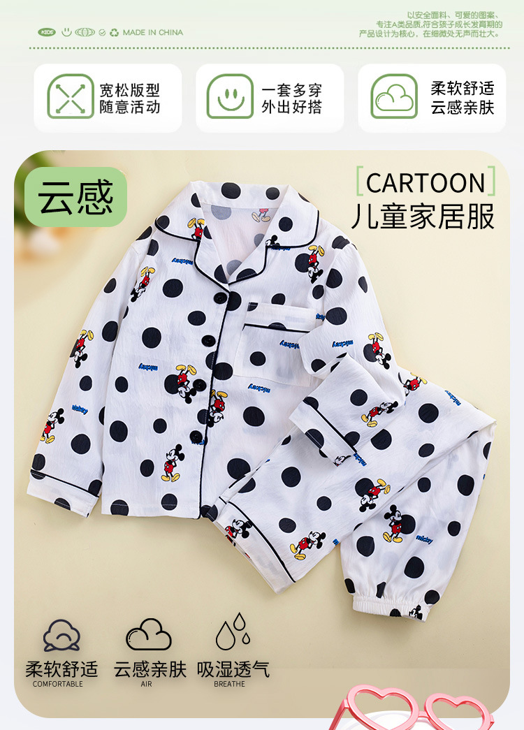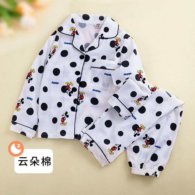 봄과 가을 어린이 잠옷 얇은 구름 면화 긴팔 카디건 옷깃 귀여운 만화 느슨한 중소형 소년과 소녀