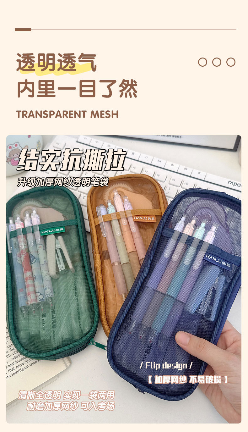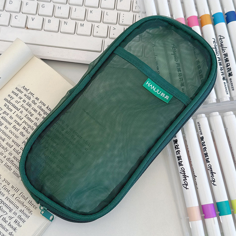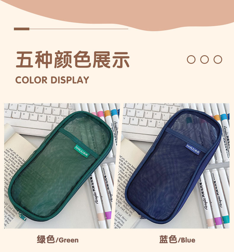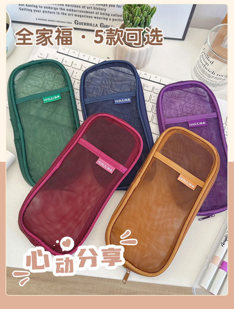 한국 HJ-006 고급 연필 가방, 투명 메쉬 문구 가방, 간단한 핸드백, 화장품 가방, 더블 레이어 수납 가방