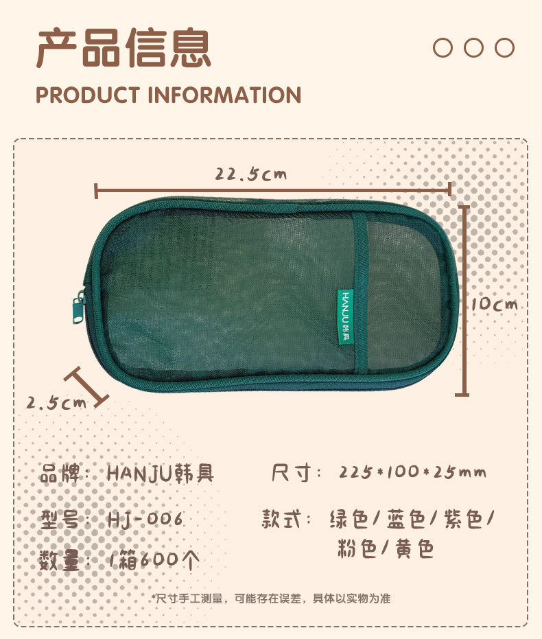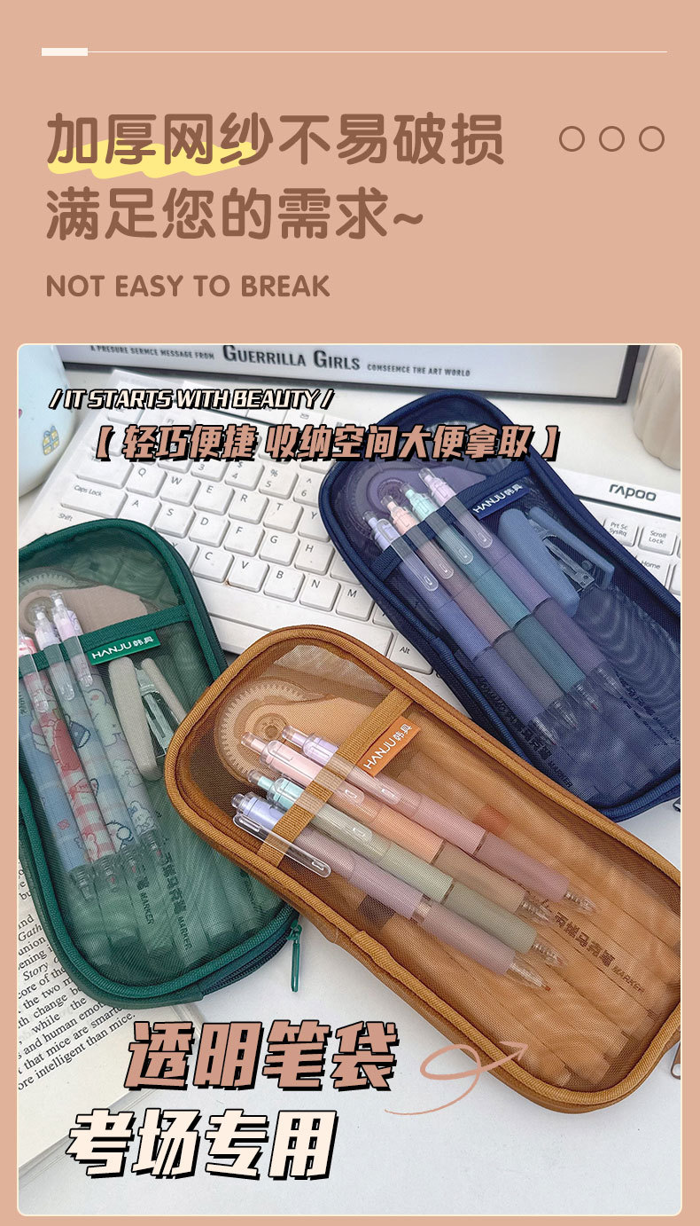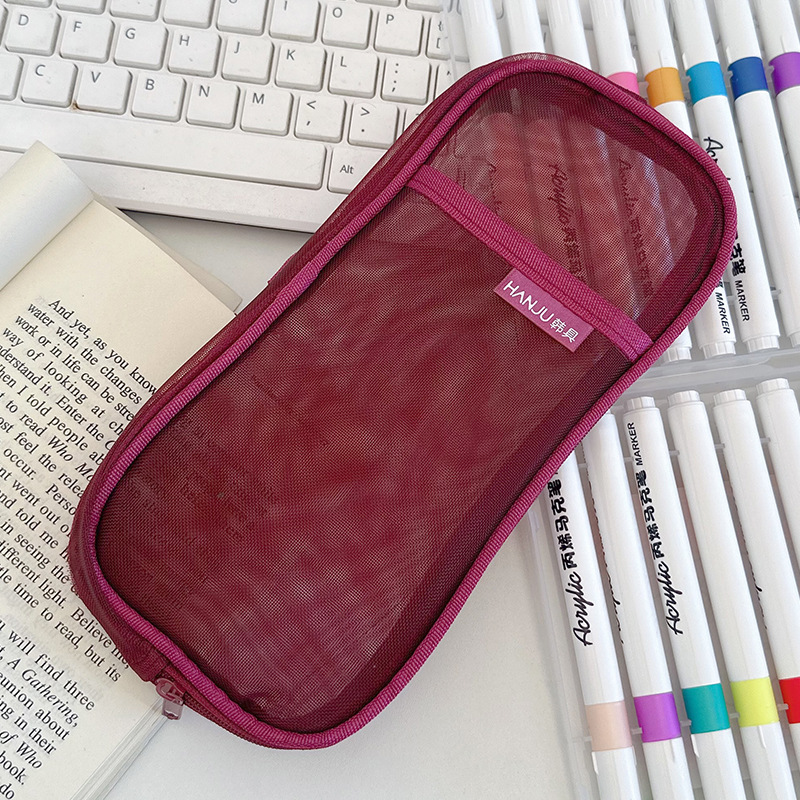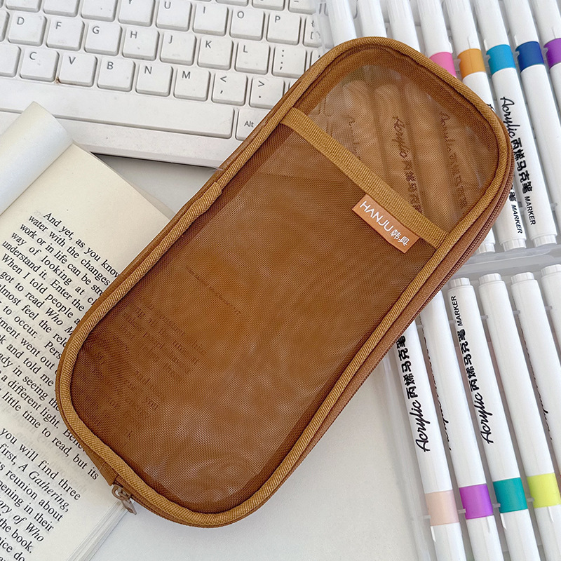 한국 HJ-006 고급 연필 가방, 투명 메쉬 문구 가방, 간단한 핸드백, 화장품 가방, 더블 레이어 수납 가방