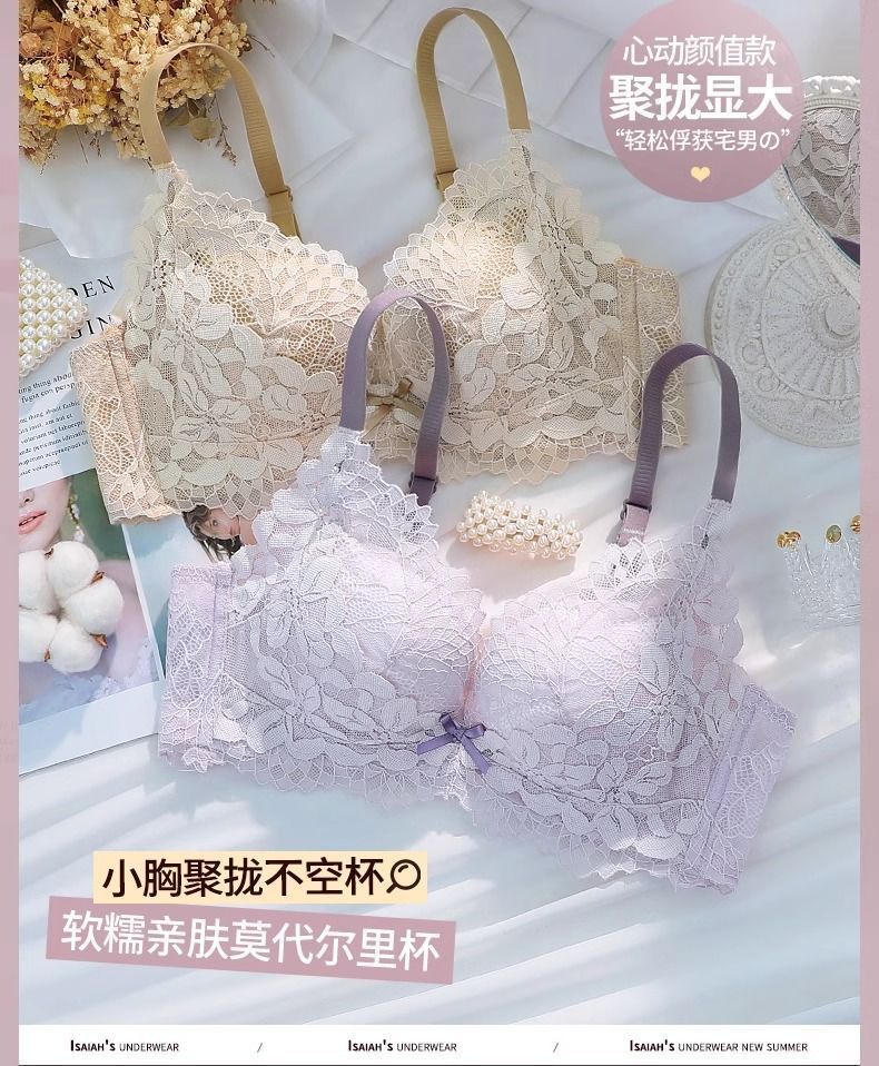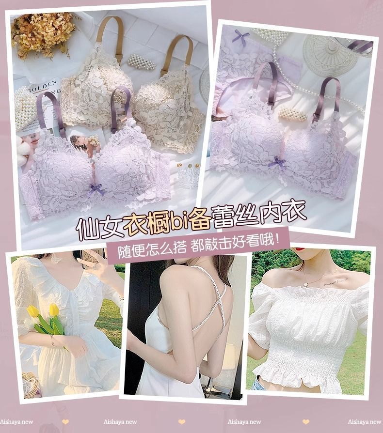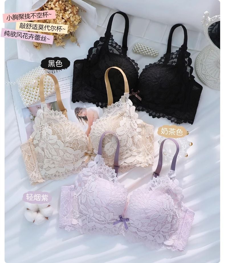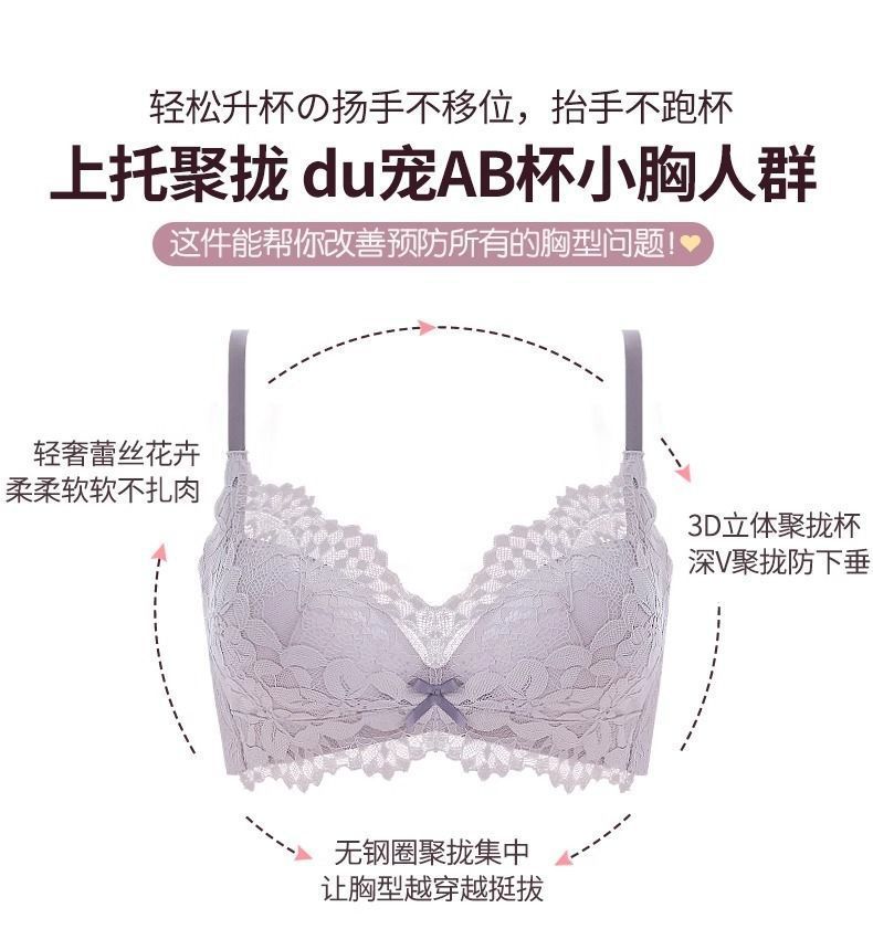 가슴이 작은 여성을 위한 섹시한 레이스 속옷, 푸쉬업 및 확대, 와이어 없음, 처짐 방지, 가슴 축소, 두꺼운 브라 세트스토어 가기