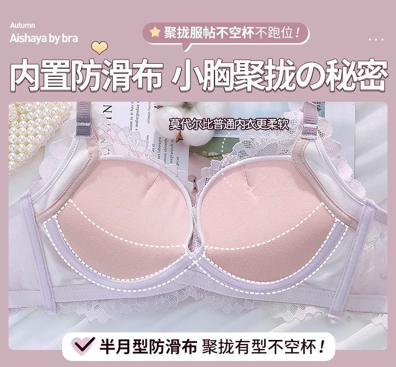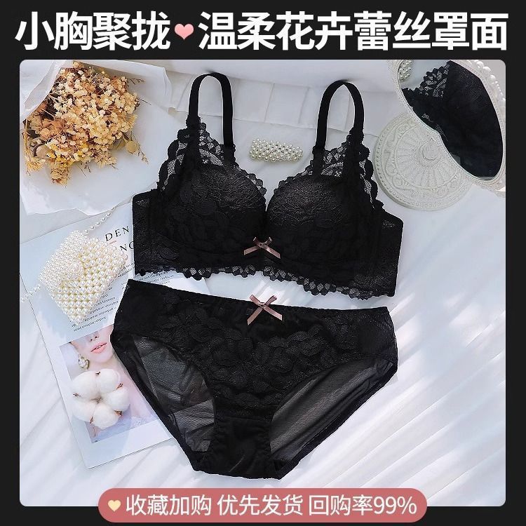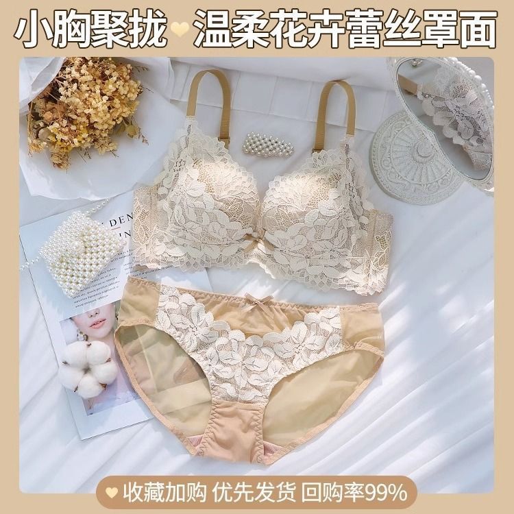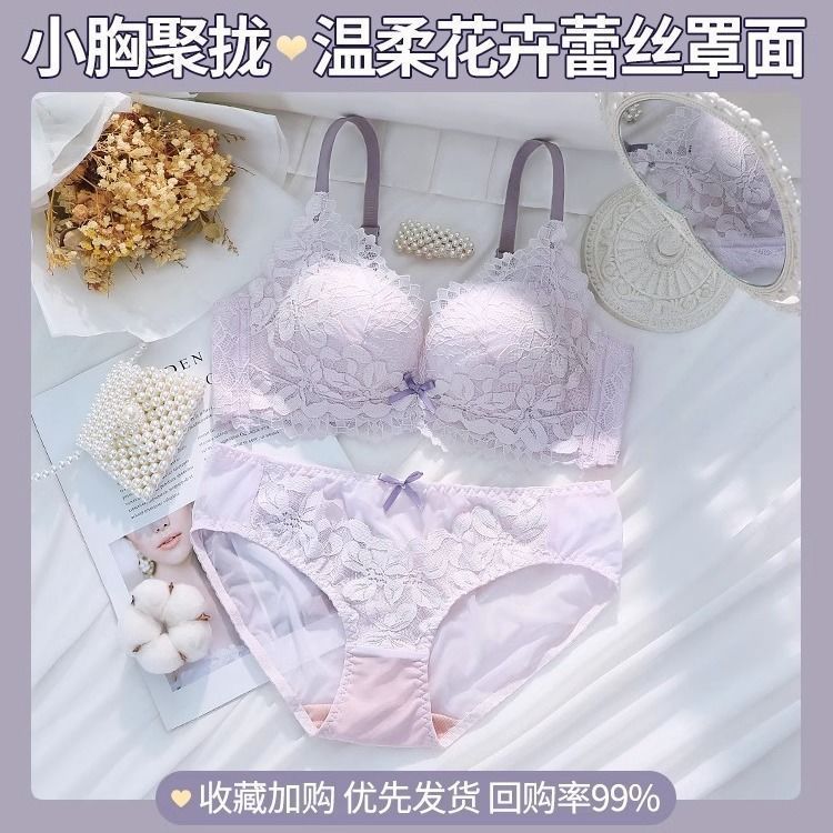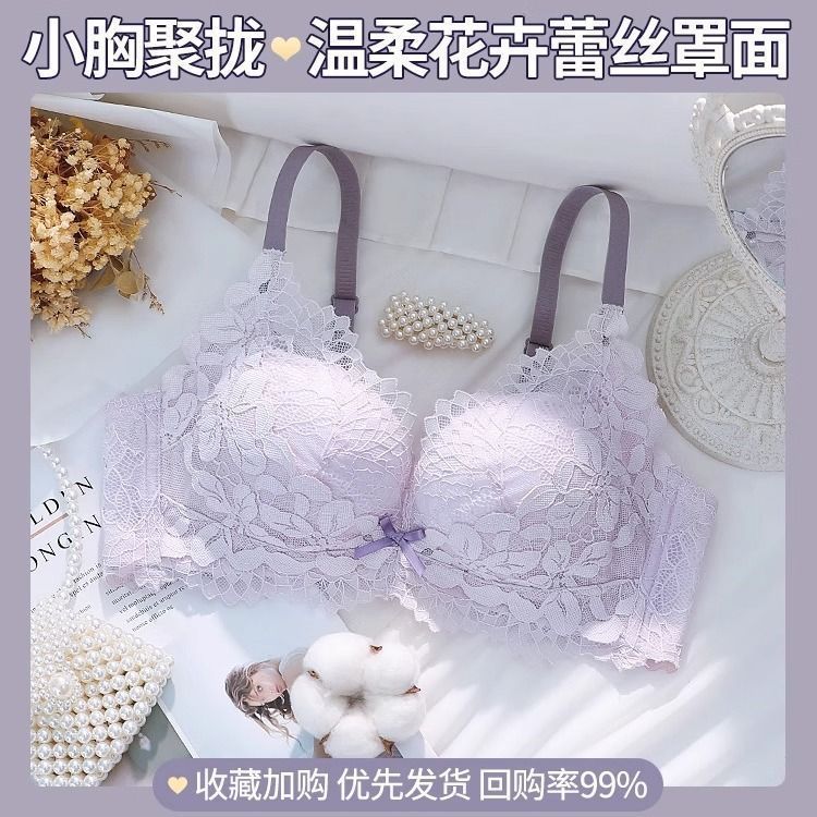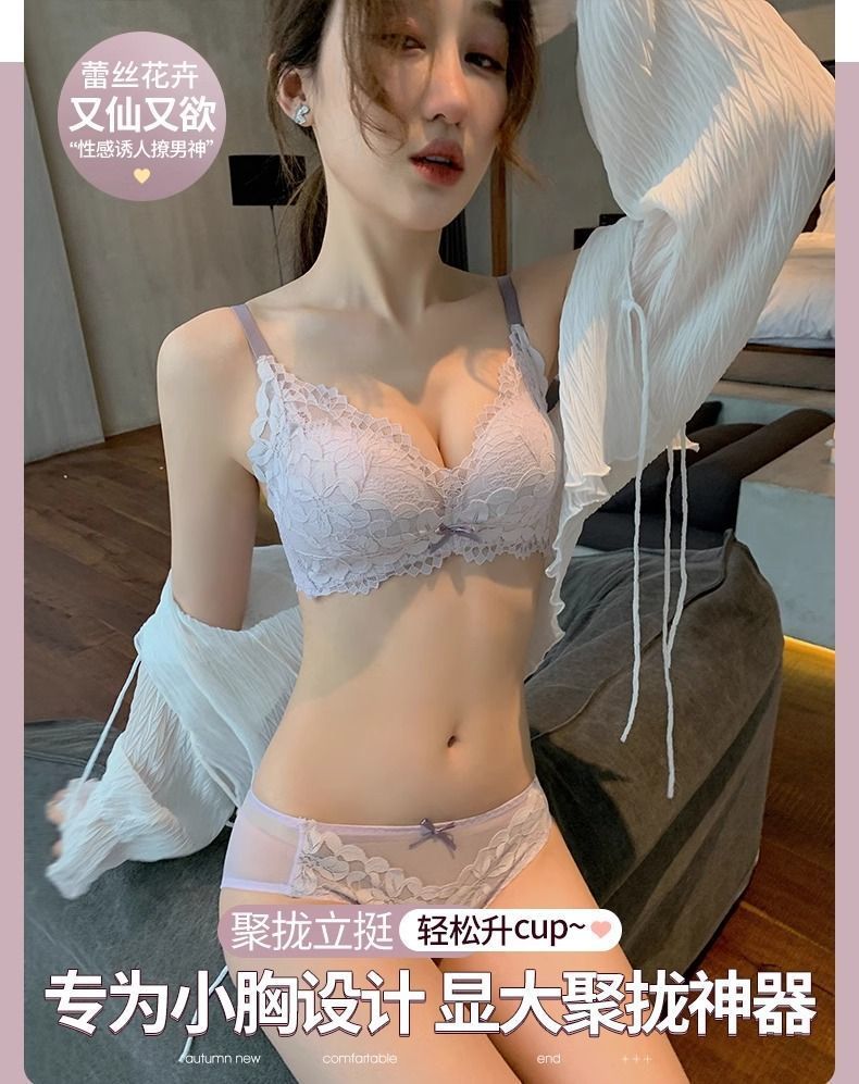 가슴이 작은 여성을 위한 섹시한 레이스 속옷, 푸쉬업 및 확대, 와이어 없음, 처짐 방지, 가슴 축소, 두꺼운 브라 세트스토어 가기