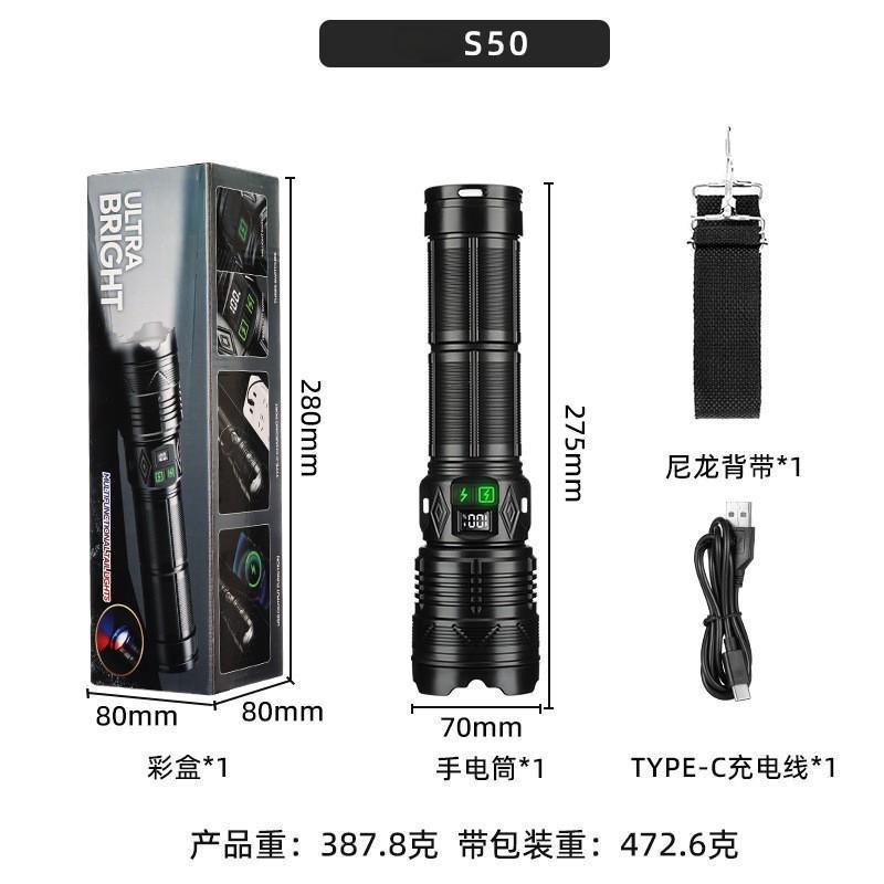 국경 간 강한 빛 슈퍼 밝은 손전등 야외 장거리 다기능 충전식 내구성 가정용 LED 배터리 수명 루멘스토어 가기