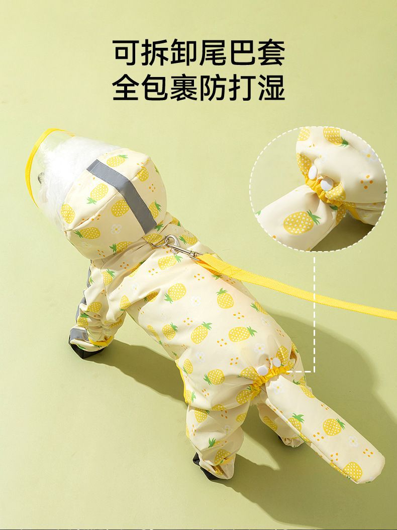 강아지 과일 4발 비옷 업그레이드된 견인형 4발 일체형 중소형견 방수 애완동물 비옷