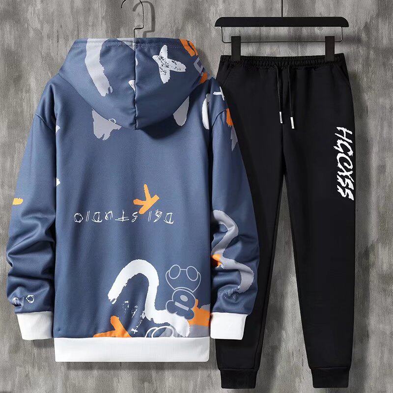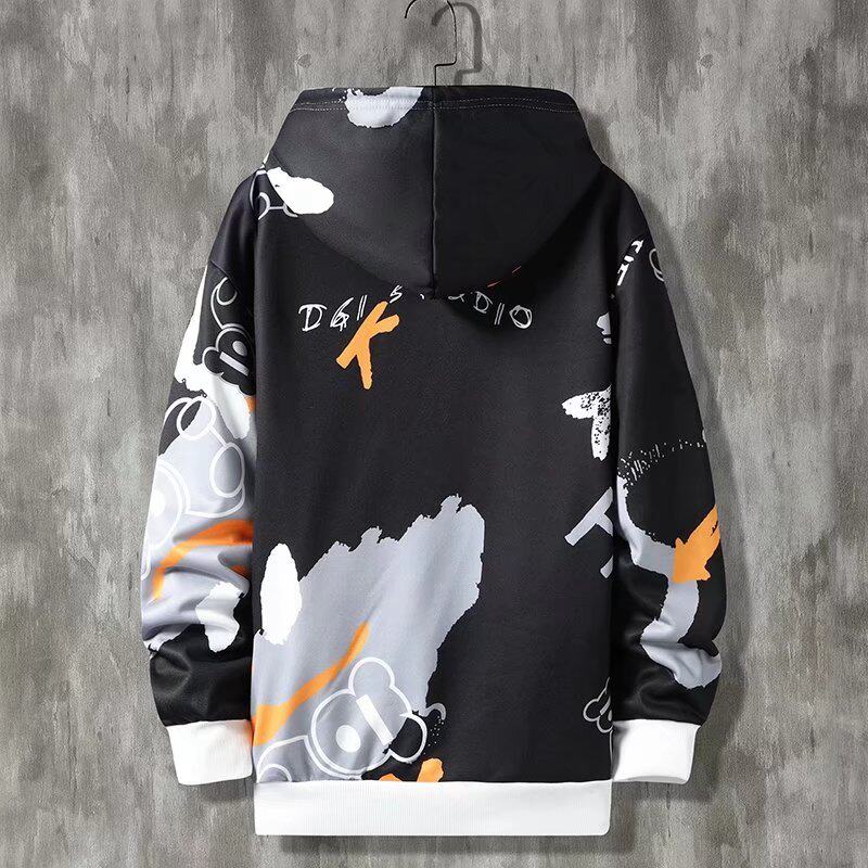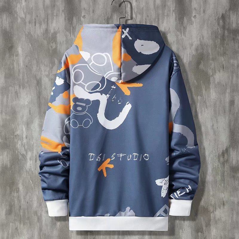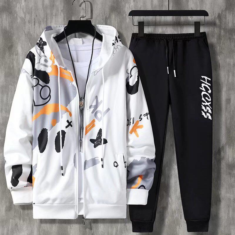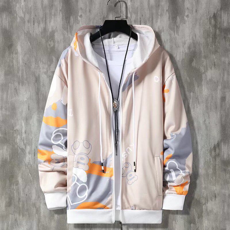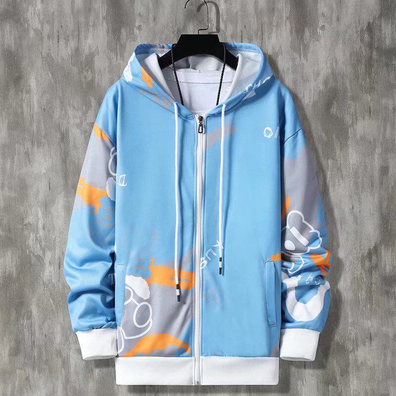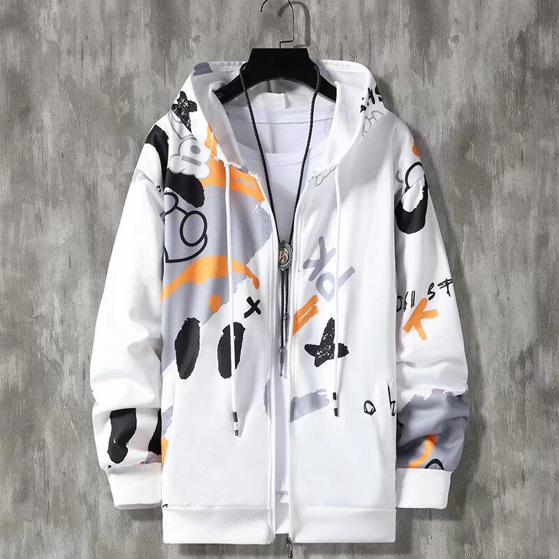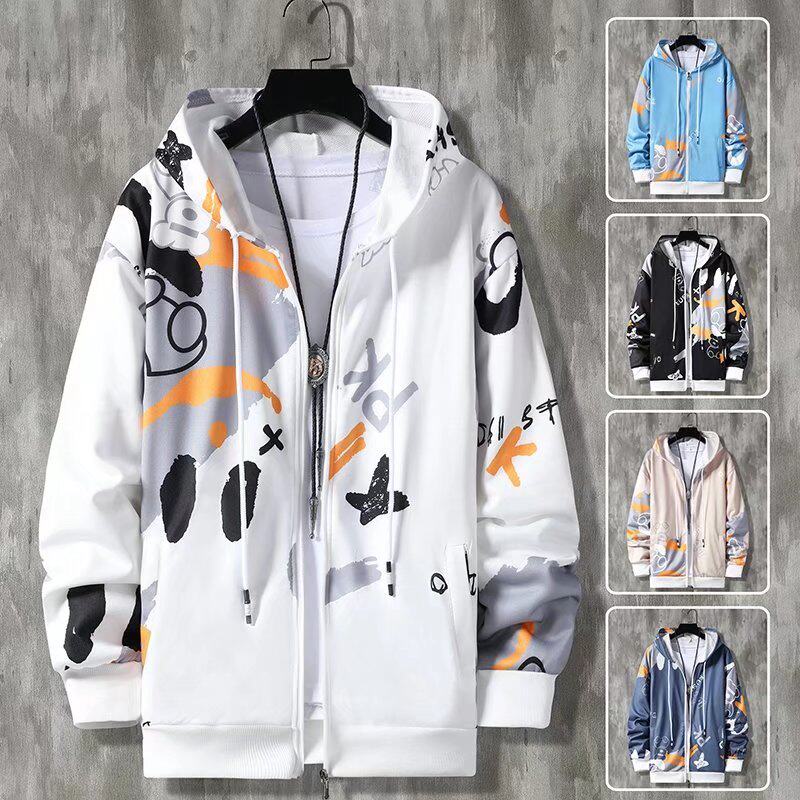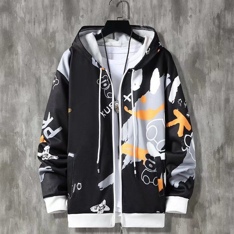 남성용 스웨트 셔츠 정장 봄, 가을 긴팔 지퍼 프린트 자켓 트렌디하고 잘 생긴 청소년 캐주얼 후드 스포츠웨어