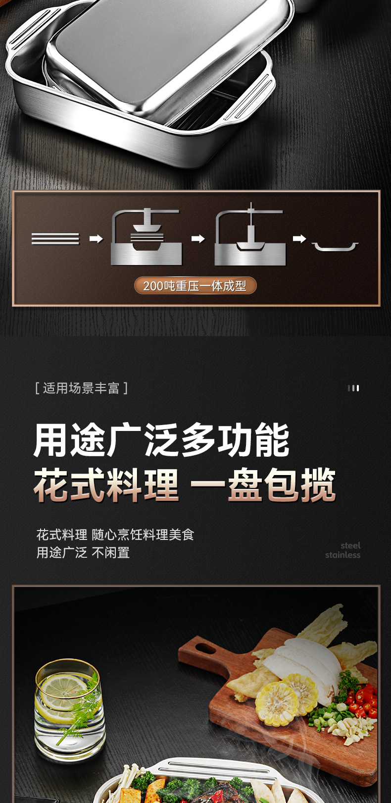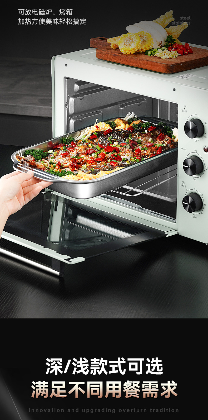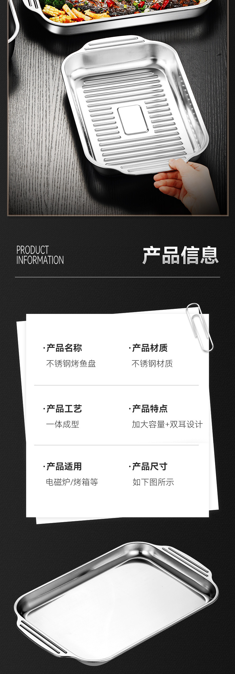 두꺼운 스테인리스 사각 접시, 생선구이 접시, 패스트푸드 접시, 평평한 바닥/물결무늬 트레이, 바베큐 접시, 밥찜 접시