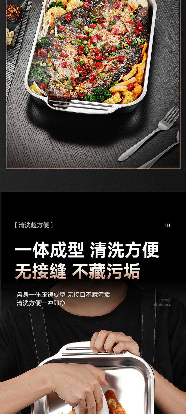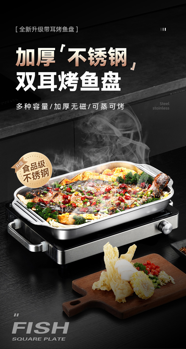 두꺼운 스테인리스 사각 접시, 생선구이 접시, 패스트푸드 접시, 평평한 바닥/물결무늬 트레이, 바베큐 접시, 밥찜 접시스토어 가기