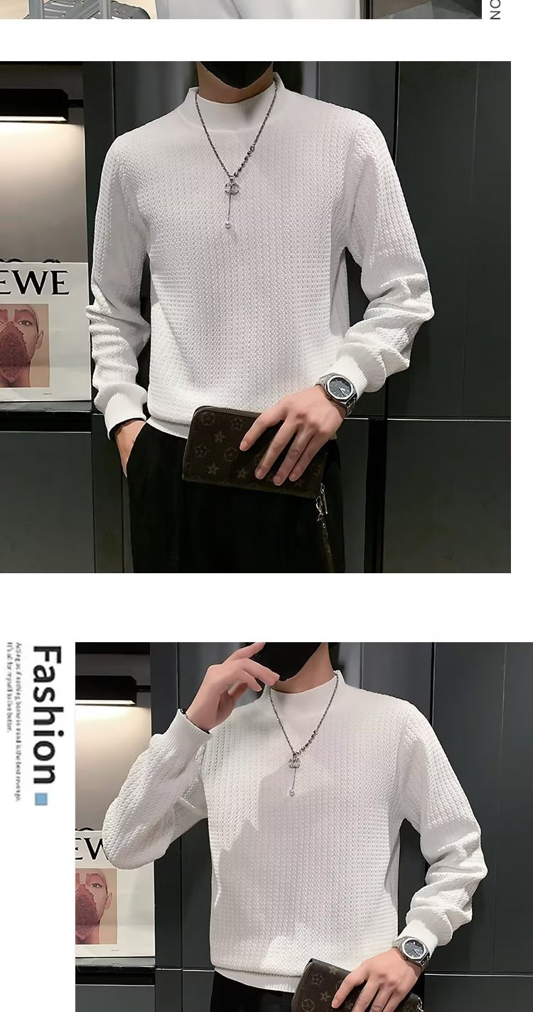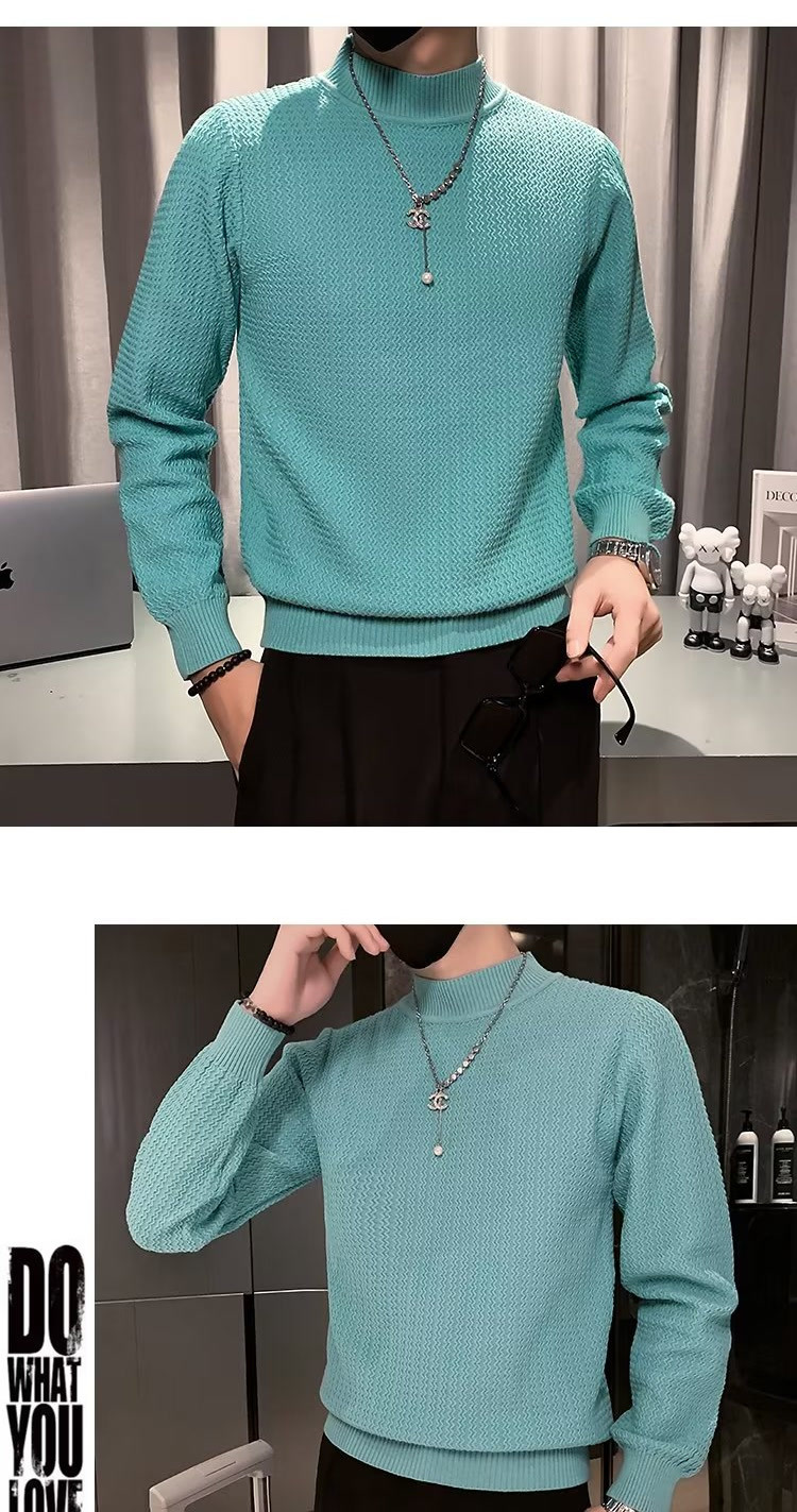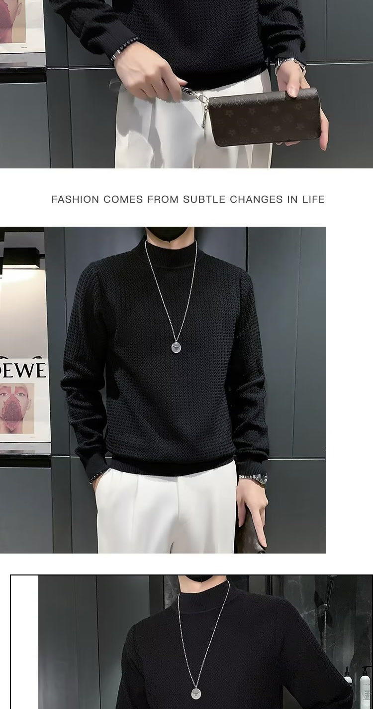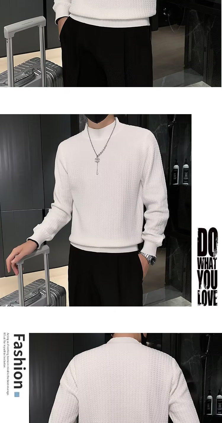 남성용 하프 터틀넥 스웨터, 한국 스타일 슬림핏 이너 니트 베이스 레이어, 활용도 높은 단색 스웨터, 심플하고 다용도스토어 가기