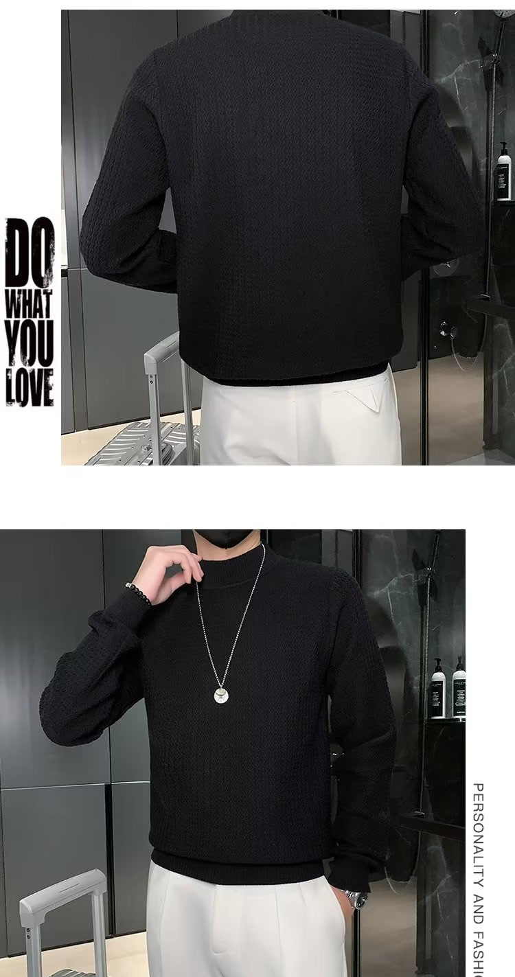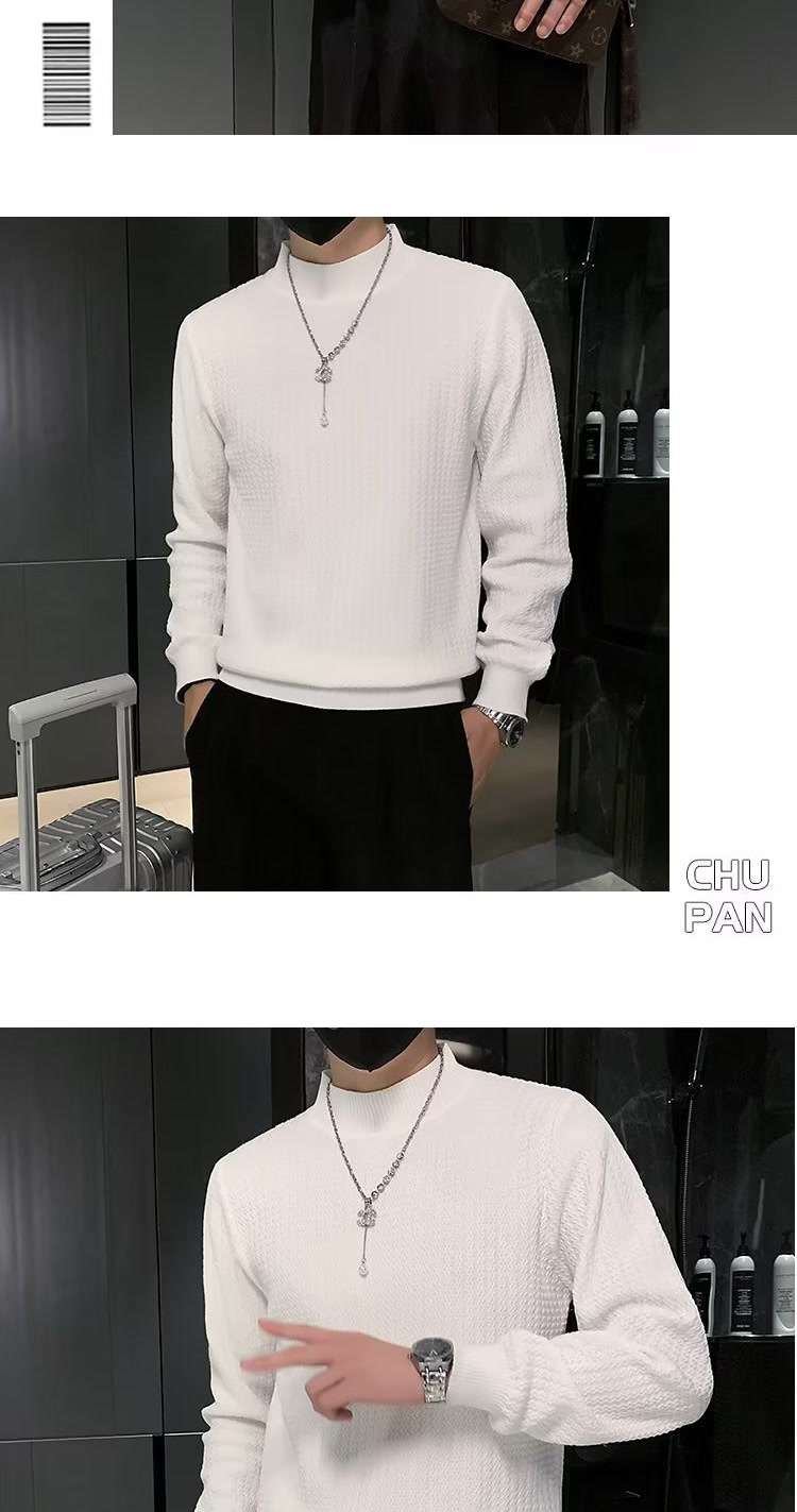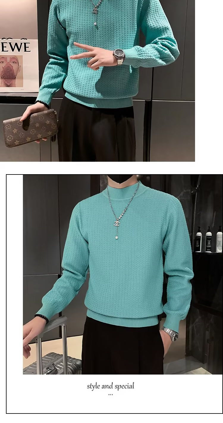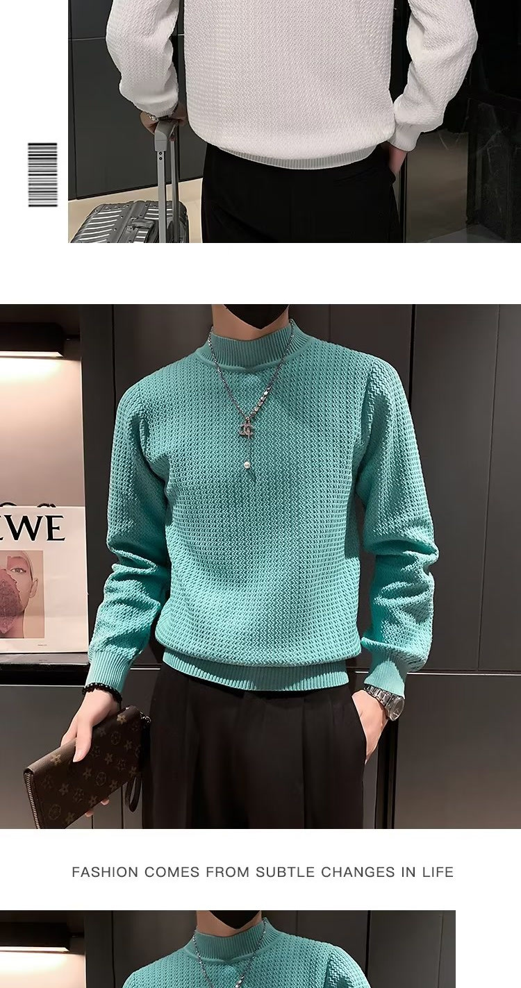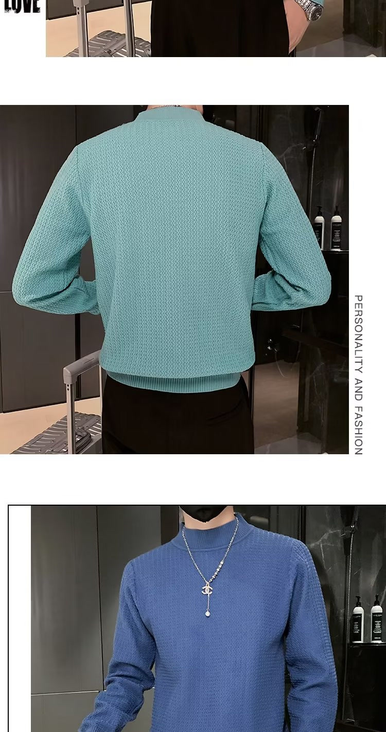 남성용 하프 터틀넥 스웨터, 한국 스타일 슬림핏 이너 니트 베이스 레이어, 활용도 높은 단색 스웨터, 심플하고 다용도스토어 가기