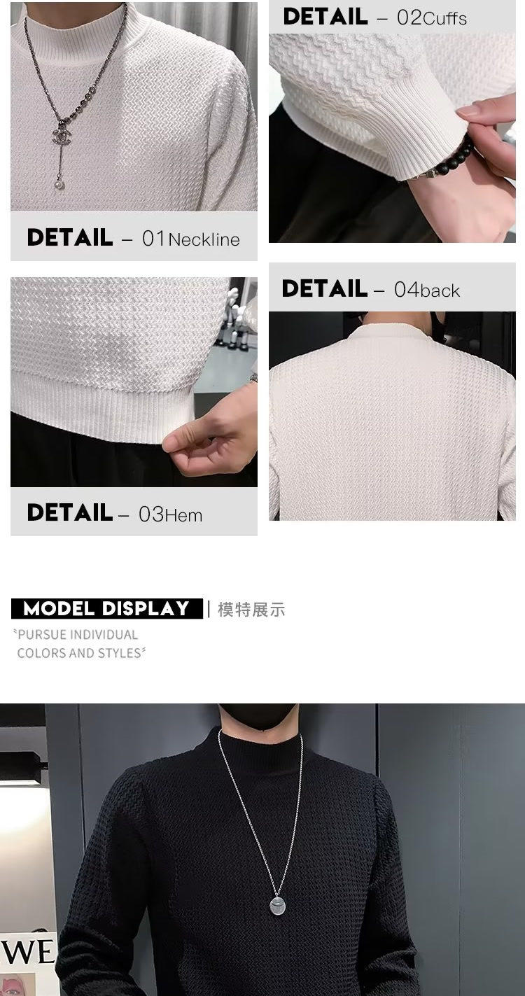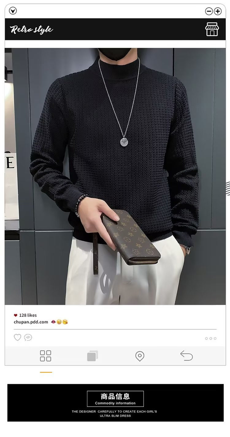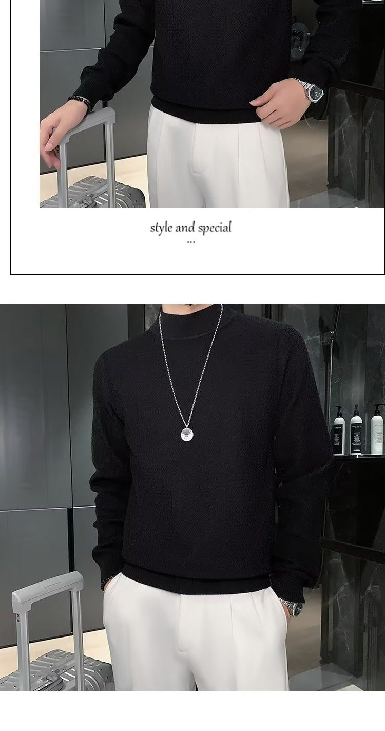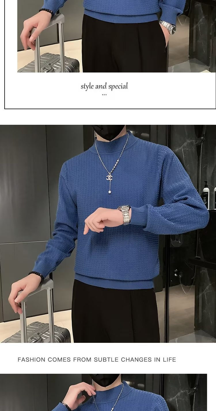 남성용 하프 터틀넥 스웨터, 한국 스타일 슬림핏 이너 니트 베이스 레이어, 활용도 높은 단색 스웨터, 심플하고 다용도스토어 가기