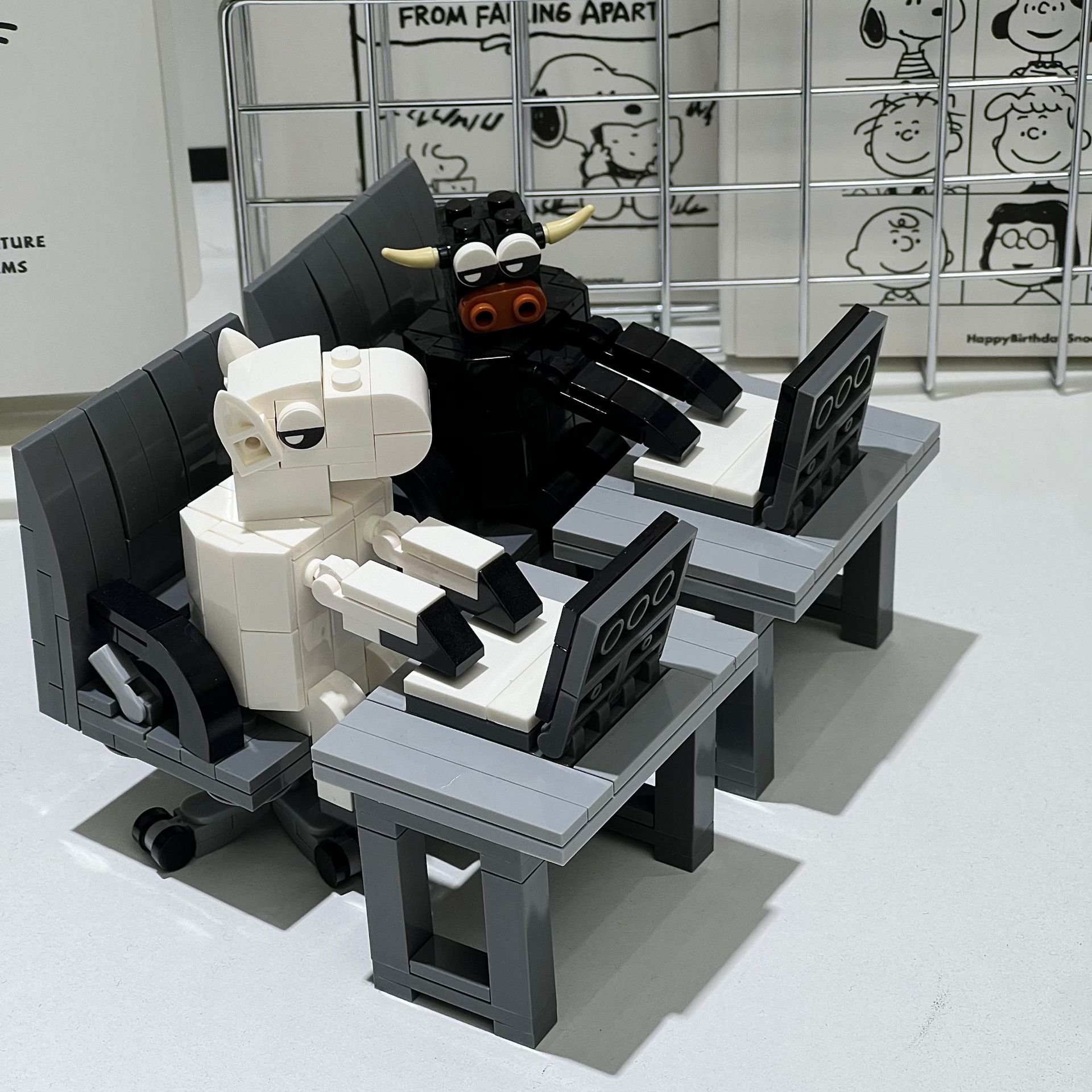 작업하는 소와 말 블록 새우 MOC 장식품 교육용 조립 장난감 인터넷 인기 트렌드 창의적 장난감 남녀 공용스토어 가기