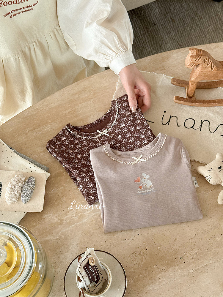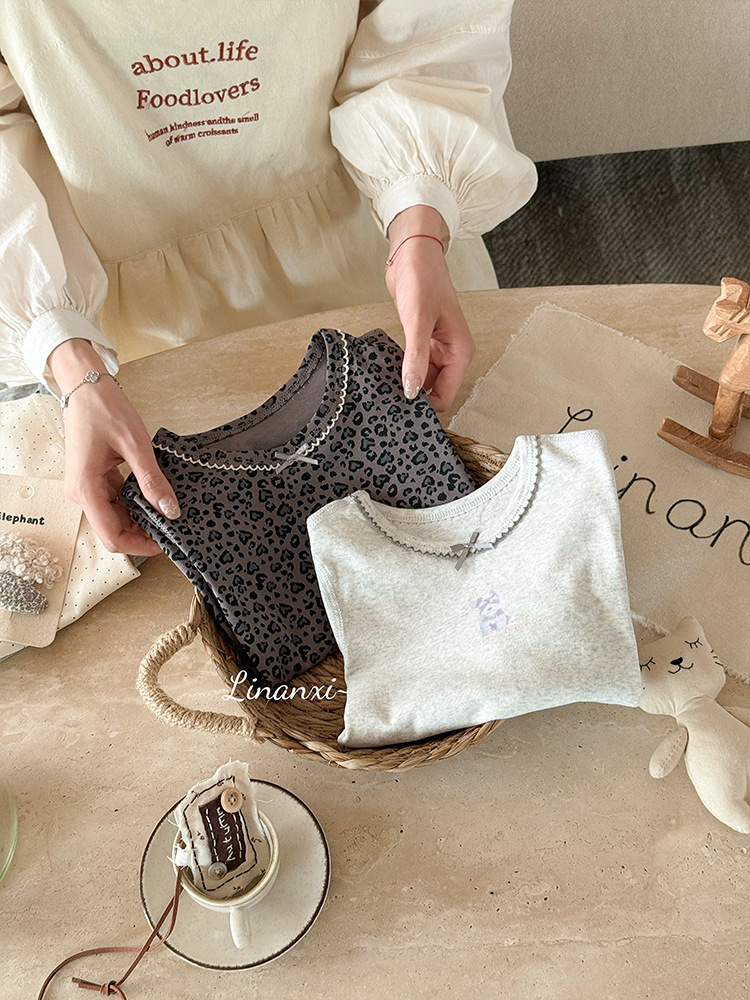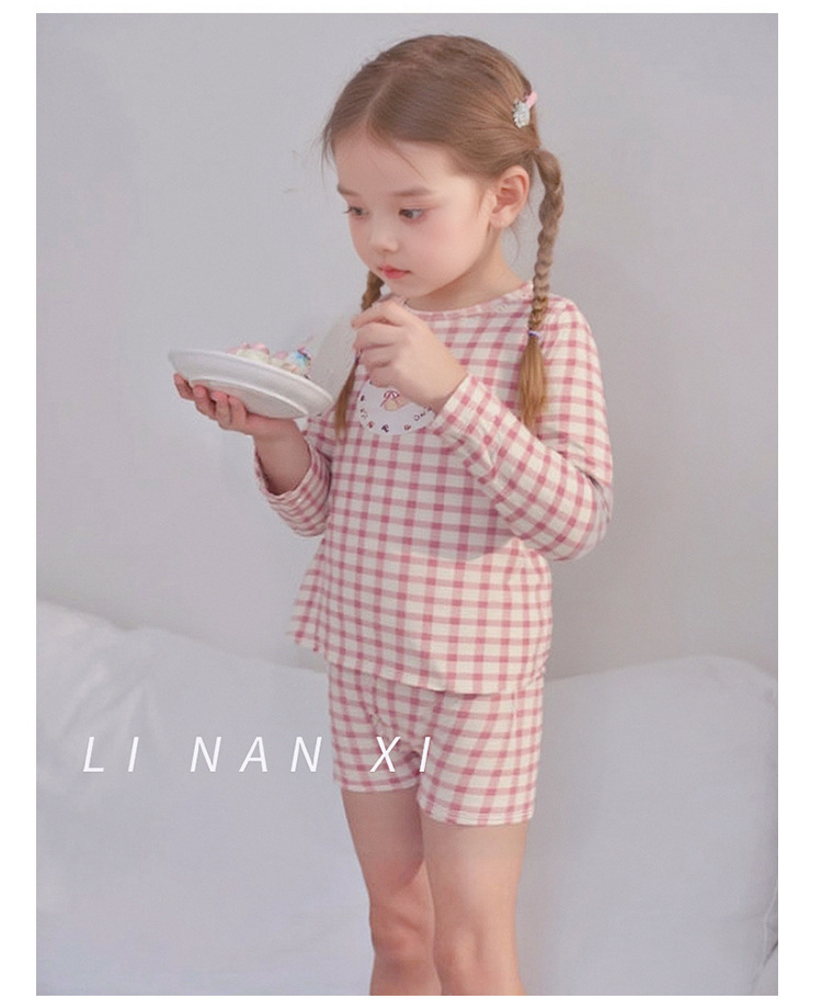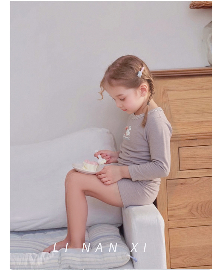 88063 여아 가정복 투피스 세트 2025 신작 가을 옷 반바지 세트 아동용 긴팔 속옷 세트 카테고리 a