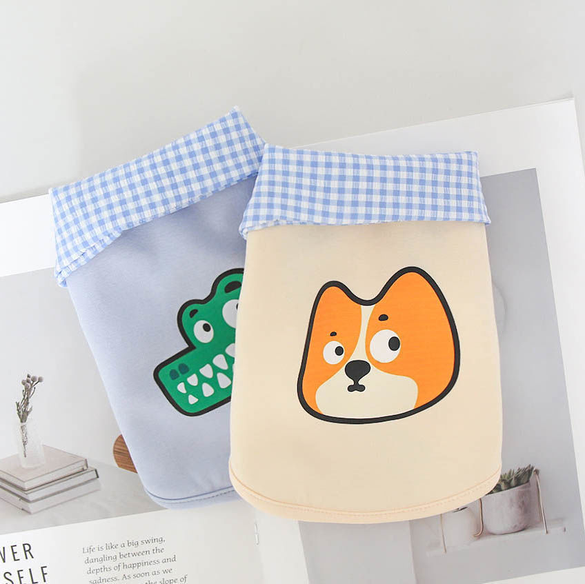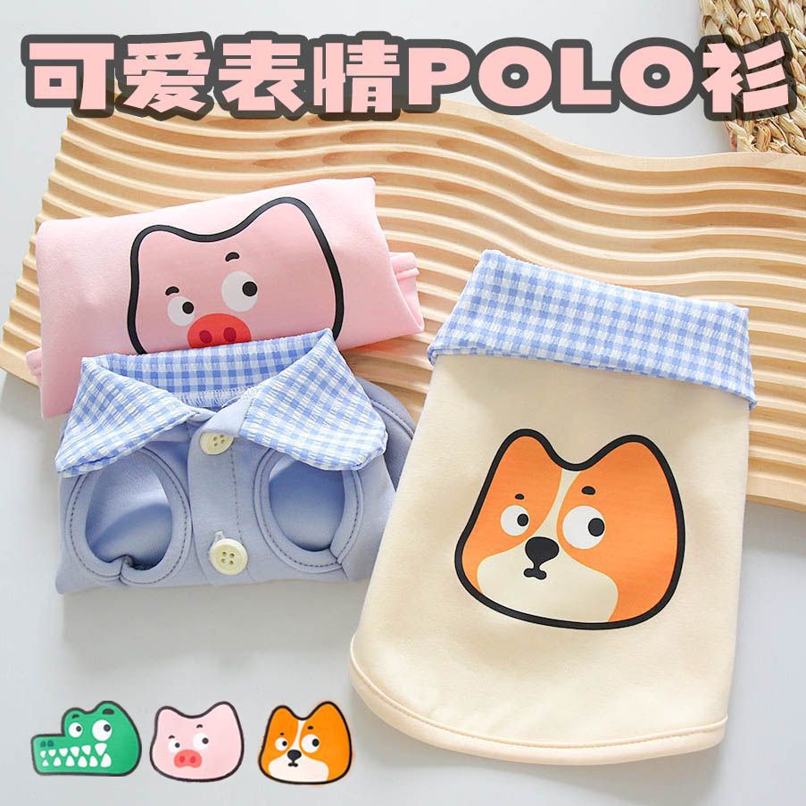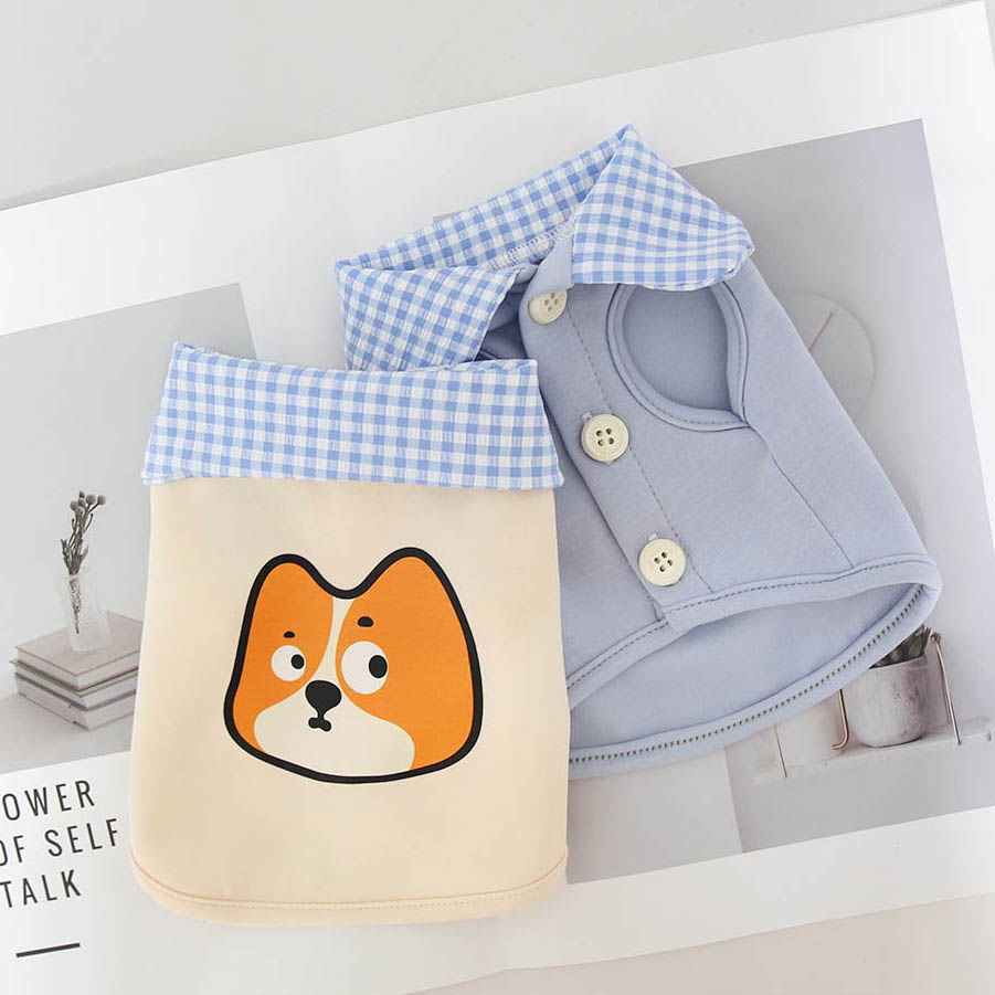 봄과 여름 새로운 귀여운 동물 표현 인쇄 격자 무늬 칼라 카디건 공주 스타일 고양이와 개 옷 Bichon Pomeranian Small스토어 가기