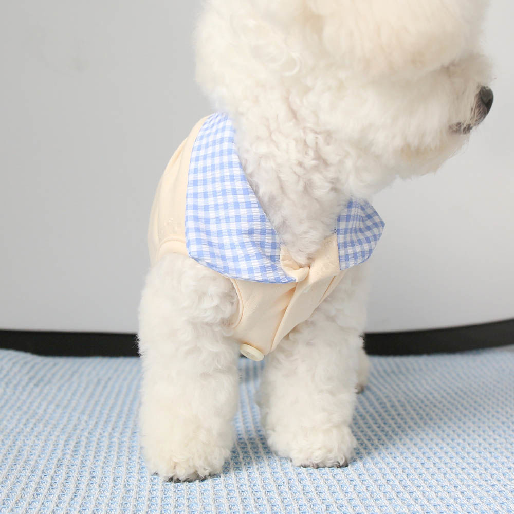 봄과 여름 새로운 귀여운 동물 표현 인쇄 격자 무늬 칼라 카디건 공주 스타일 고양이와 개 옷 Bichon Pomeranian Small